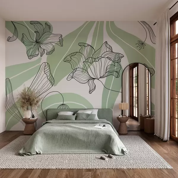 Wall Mural Photo Wallpaper abstract leaves and flowers in green tones Nr. w04499v1