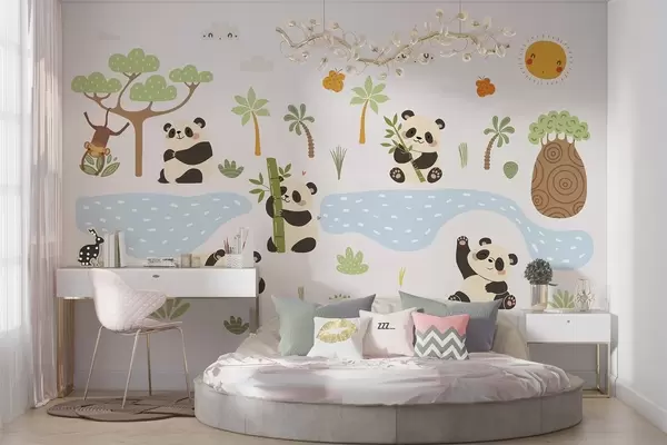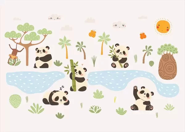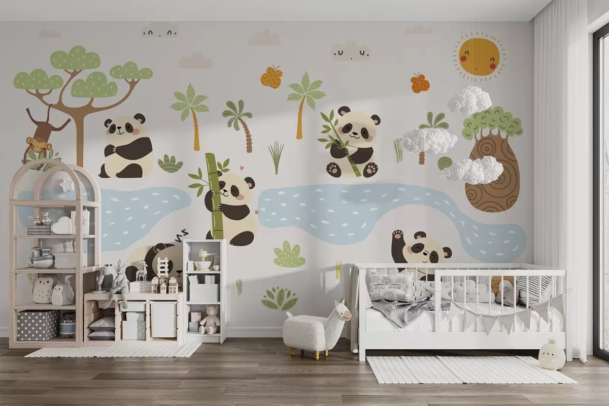 Wall Mural Photo Wallpaper Cheerful pandas by the river Nr. w04541