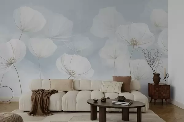 Wall Mural Photo Wallpaper Airy white flowers on a blue background w04580