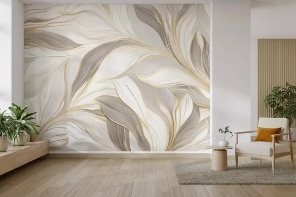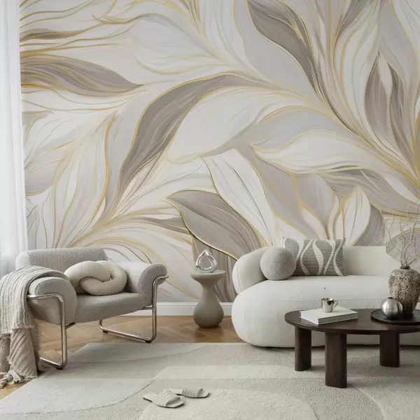 Wall Mural Photo Wallpaper Leaves with smooth curves in light beige-gray tones Nr. w04609
