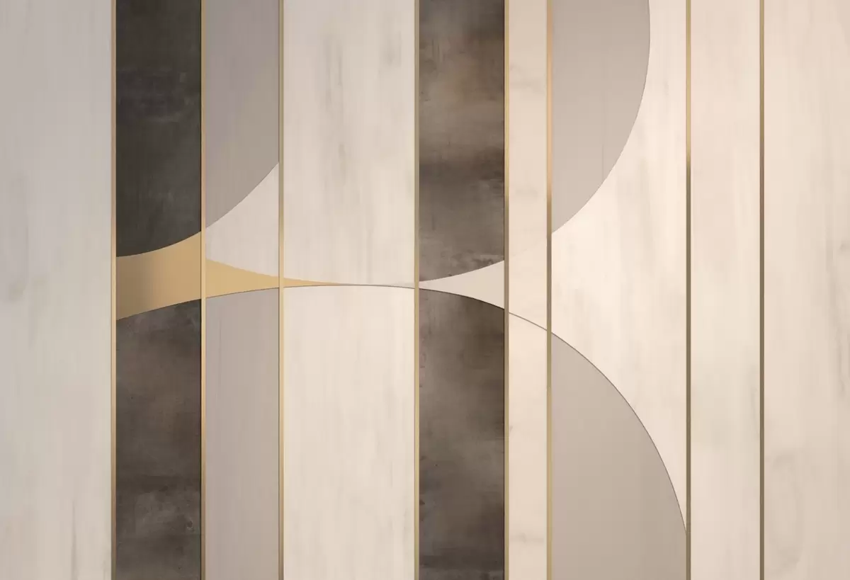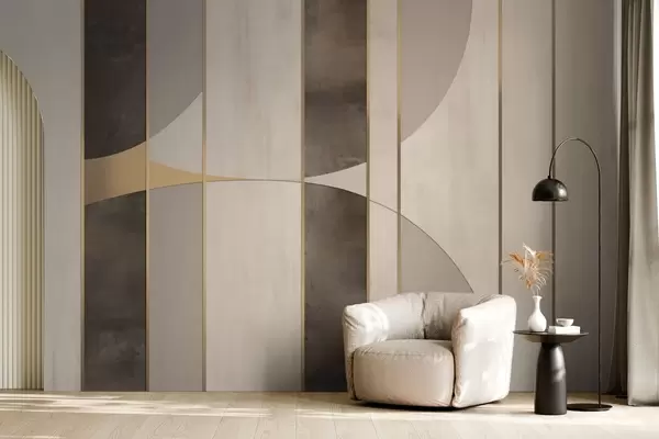 Wall Mural Photo Wallpaper Geometric panels with arcs and champagne accents Nr. w04616