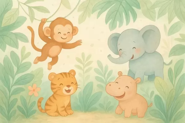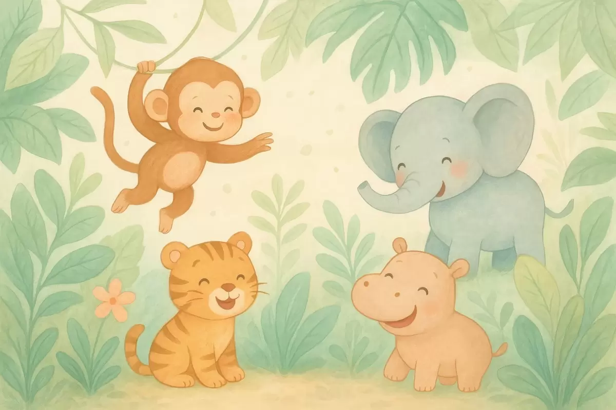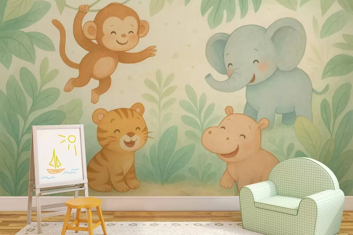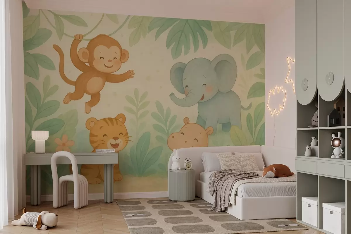 Wall Mural Photo Wallpaper cute baby animals in the jungle Nr. w04622