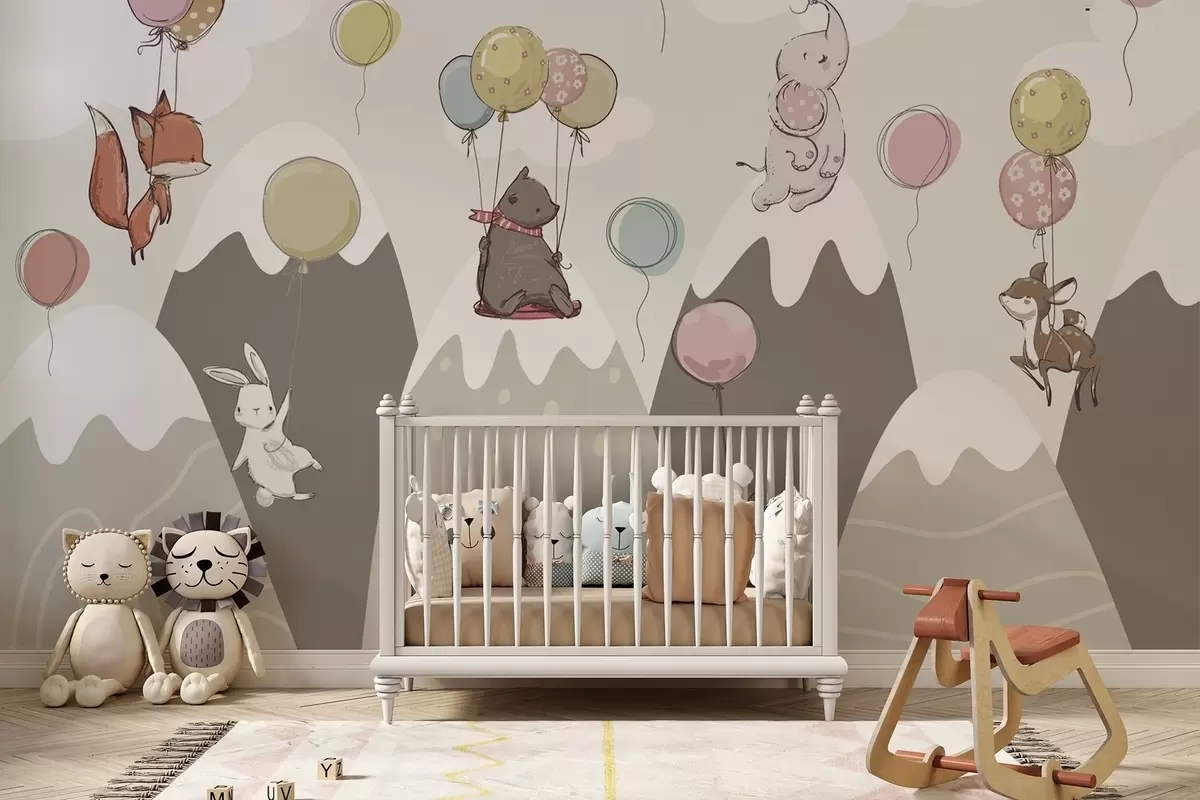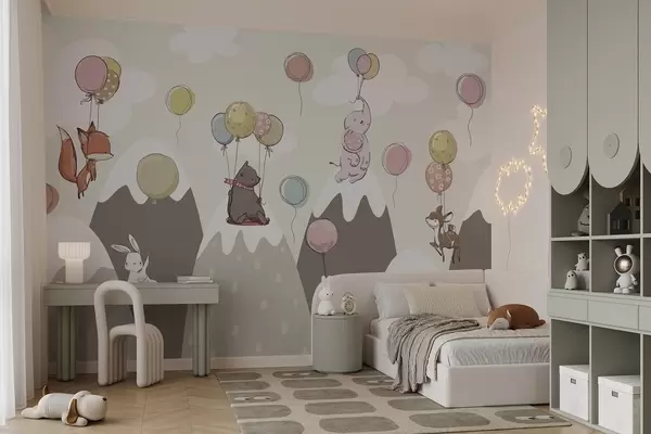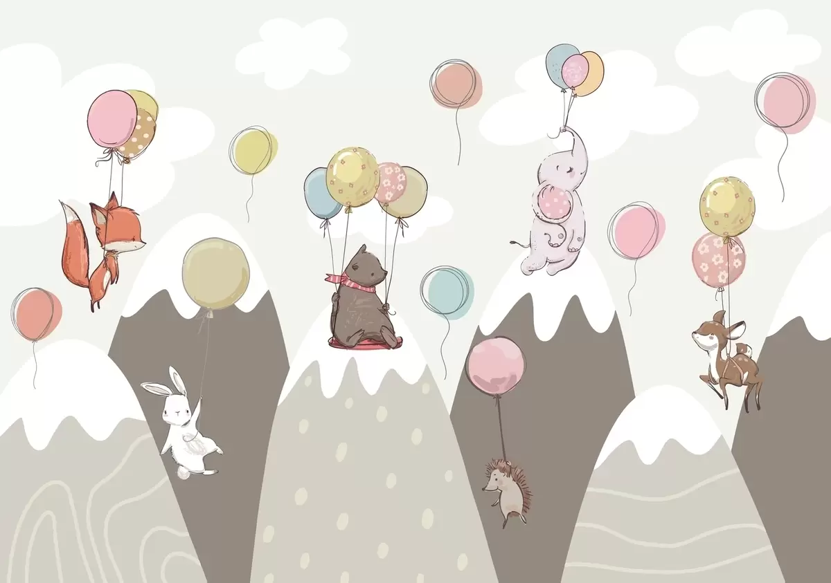 Wall Mural Photo Wallpaper Children's Scandinavian mountains with animals Nr. w04651
