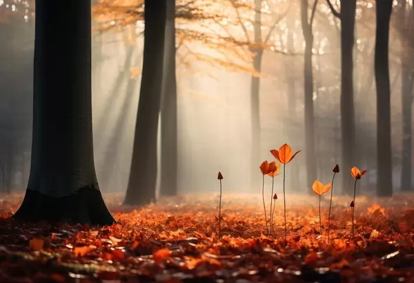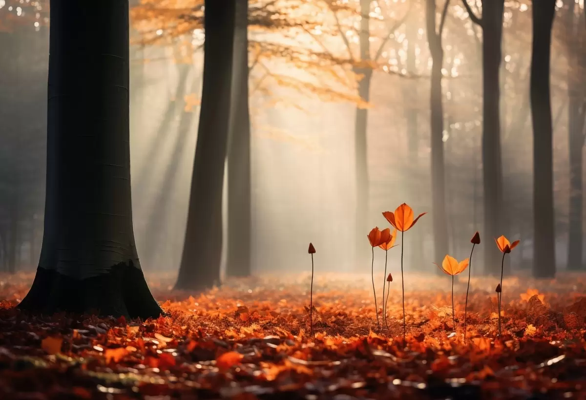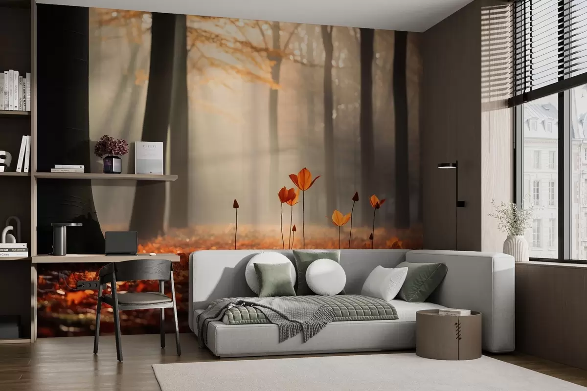 Wall Mural Photo Wallpaper Autumn forest with sun rays and bright foliage Nr. w04710