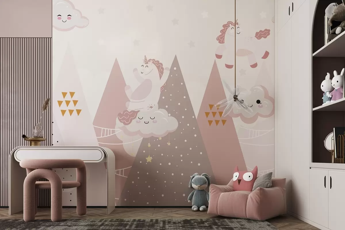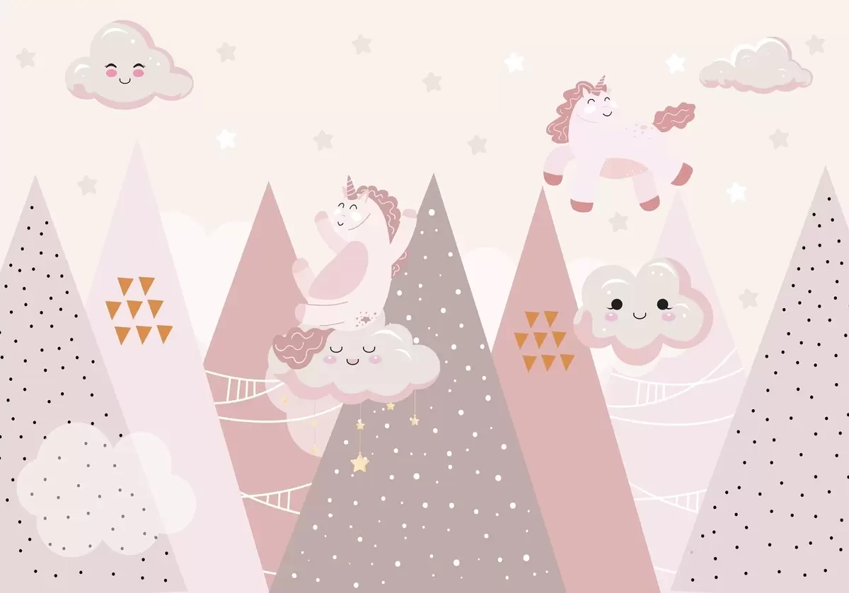 Wall Mural Photo Wallpaper Pony in the mountains with clouds Nr. w04741