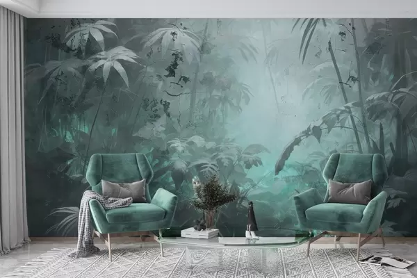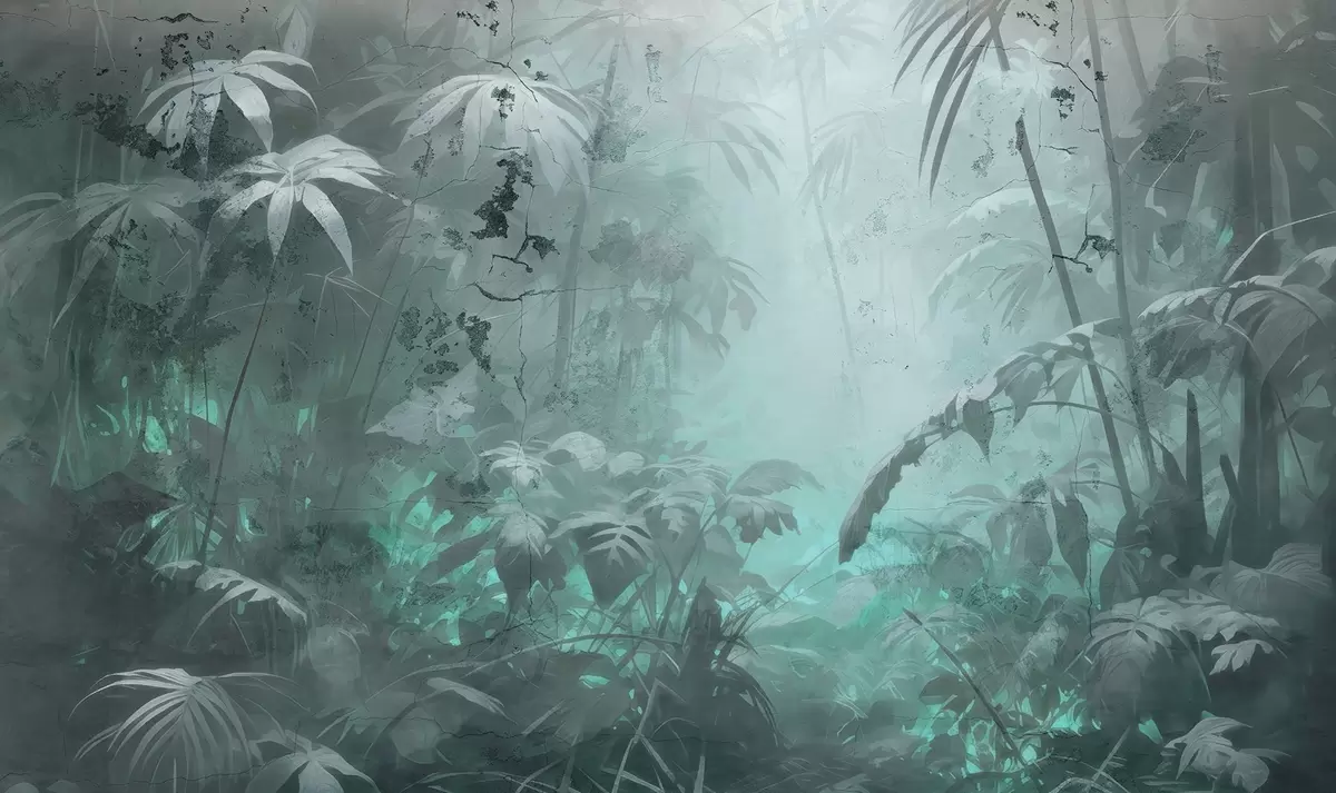 Wall Mural Photo Wallpaper Painted jungle behind a grunge concrete wall Nr. w04833v1