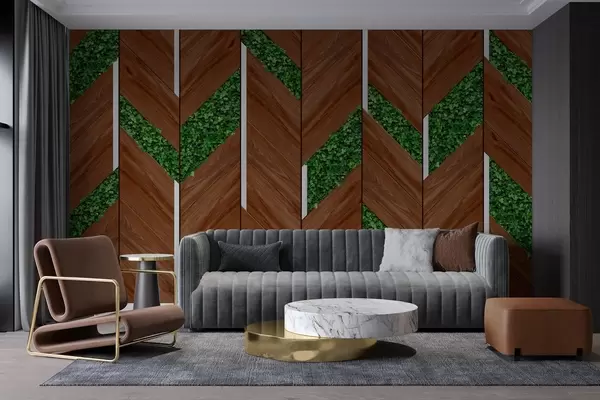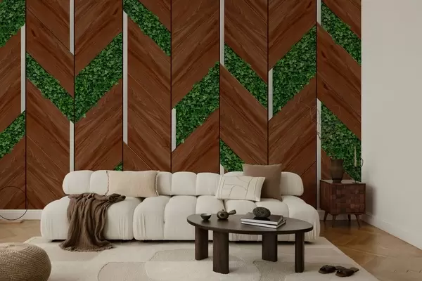 Wall Mural Photo Wallpaper imitation of dark wood panels with plant inserts Nr. w04875v1