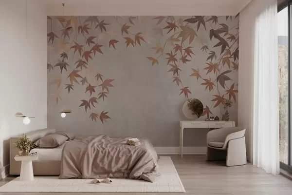 Wall Mural Photo Wallpaper multicolored ivy leaves falling from above in the style of oil painting Nr. w04878