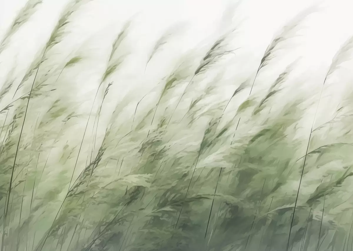 Wall Mural Photo Wallpaper Light grasses in the wind, soft green-and-white strokes Nr. w04957