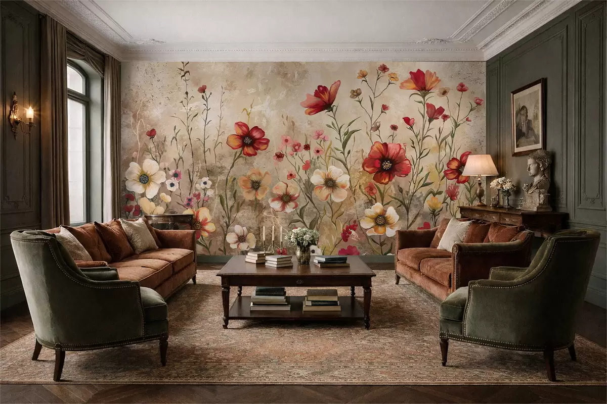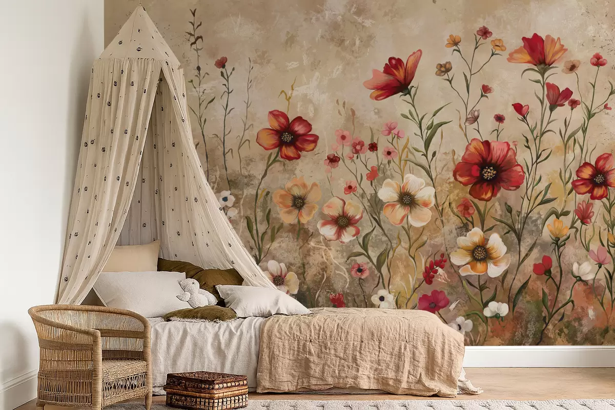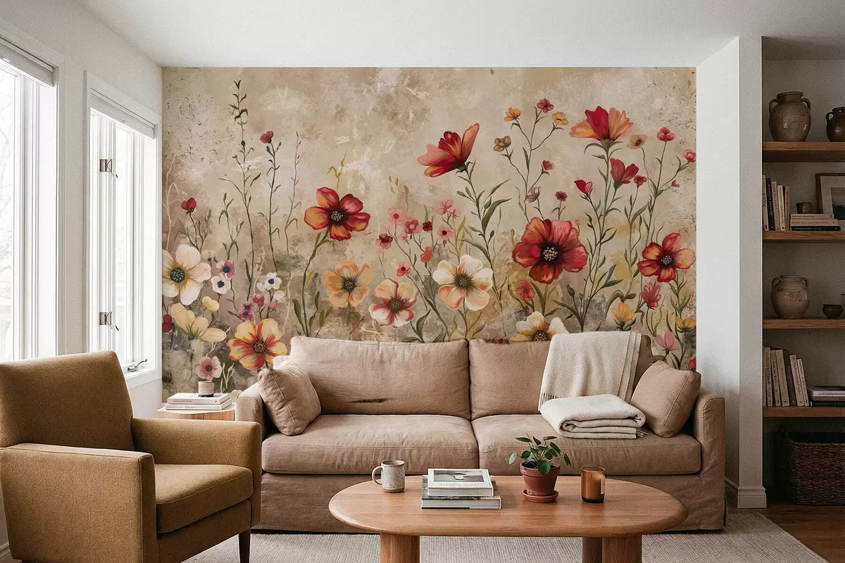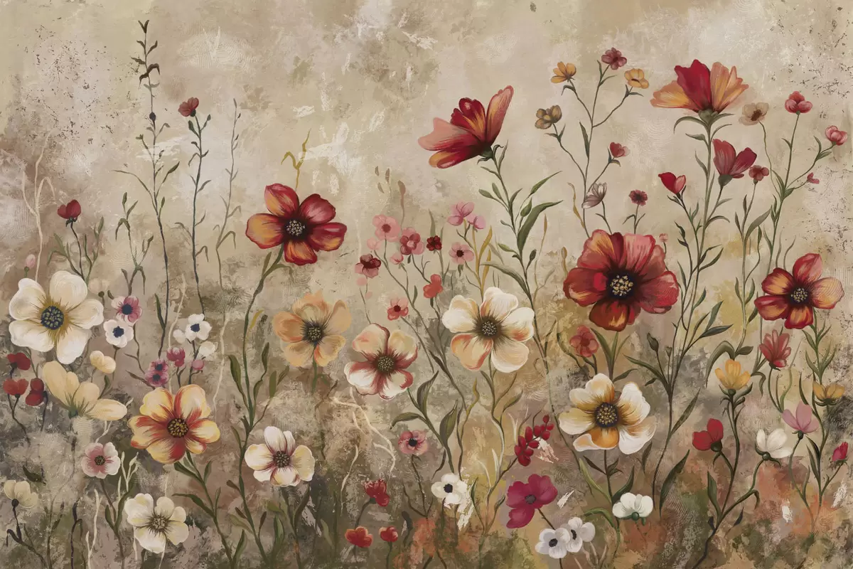 Wall Mural Photo Wallpaper Floral composition with textured background in warm tones Nr. w05016
