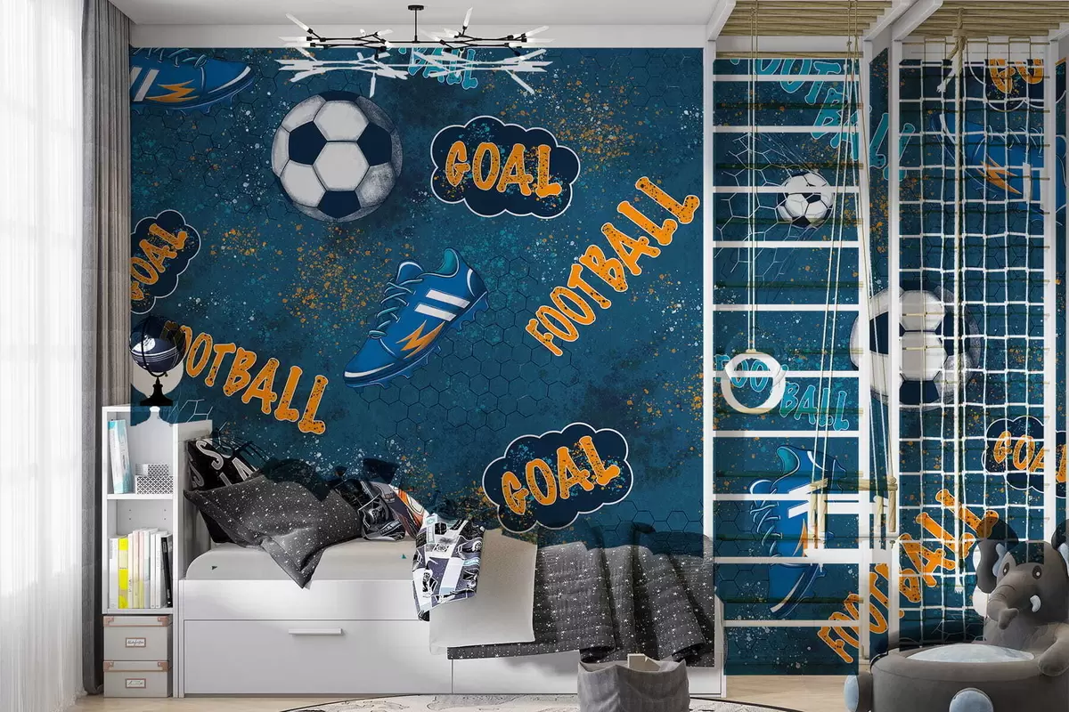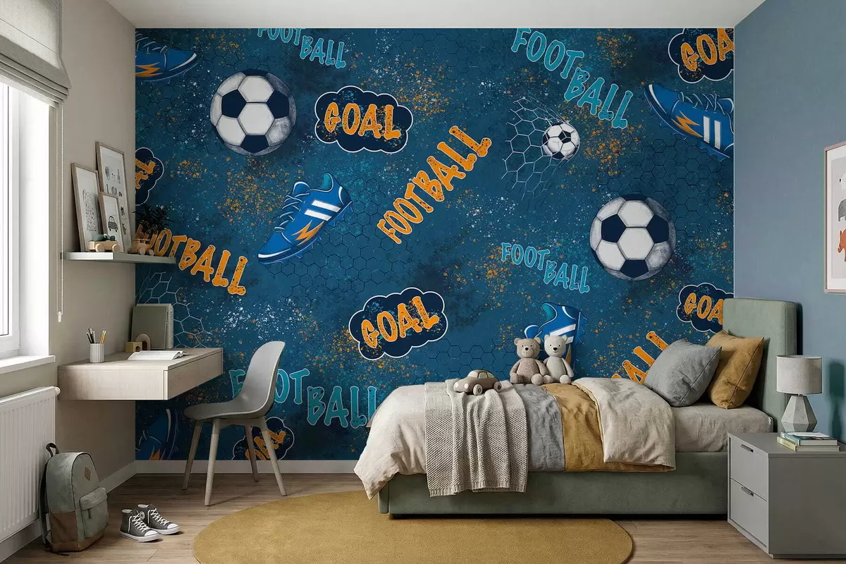 Wall Mural Photo Wallpaper Kids pattern with balls, shoes and sporty words Nr. w05037