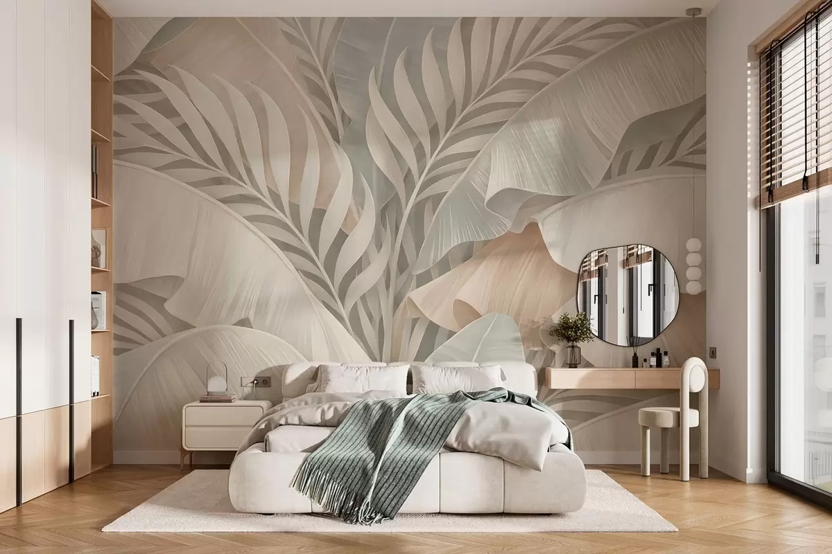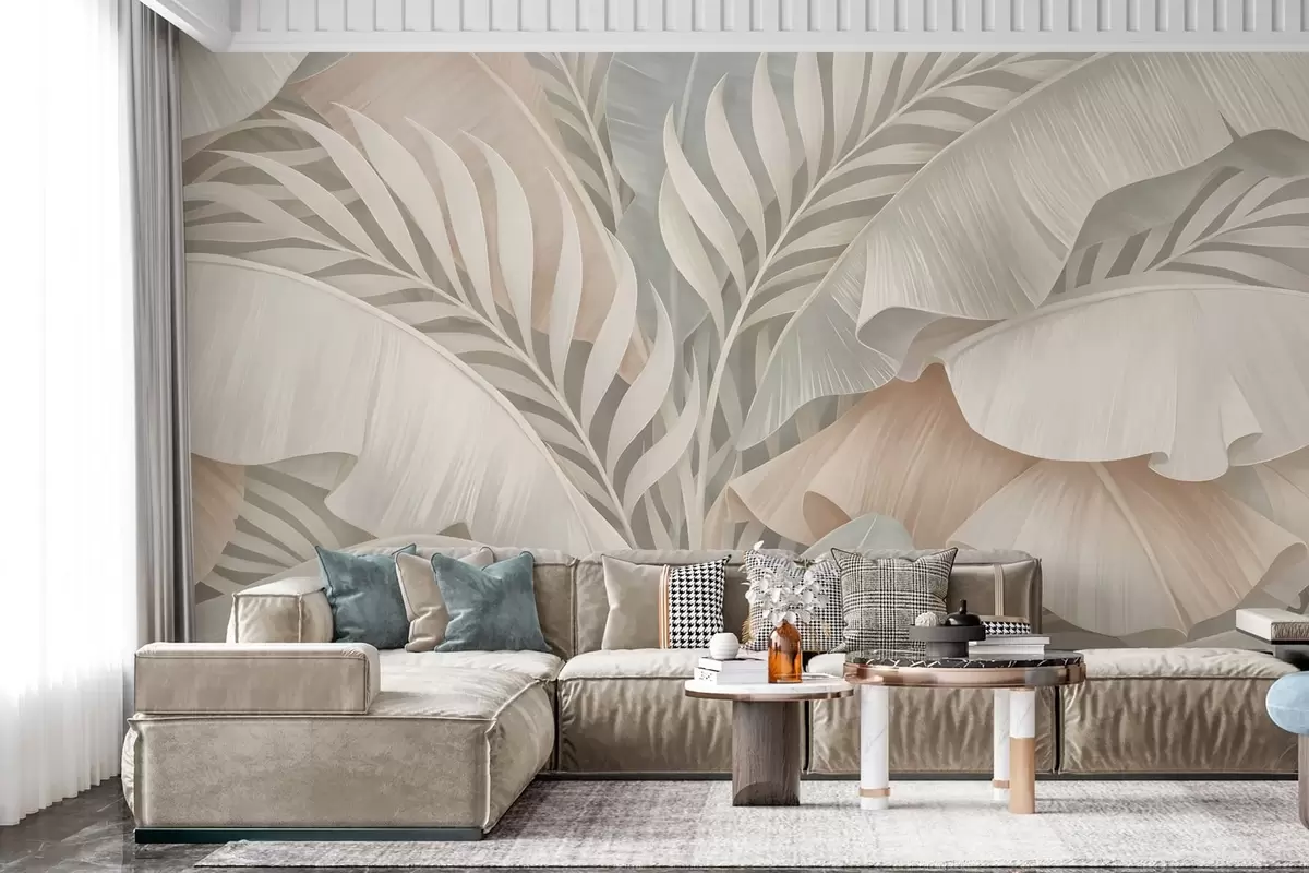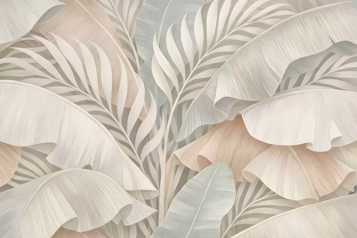 Wall Mural Photo Wallpaper large tropical leaves in shades of peach and dull turquoise Nr. w05062