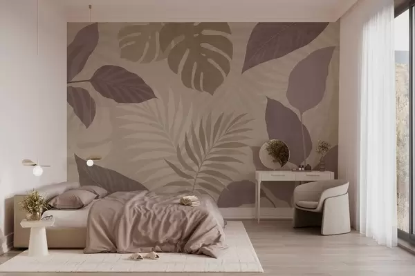 Wall Mural Photo Wallpaper textured tropical leaves on a sandy background Nr. w05063