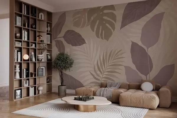 Wall Mural Photo Wallpaper textured tropical leaves on a sandy background Nr. w05063