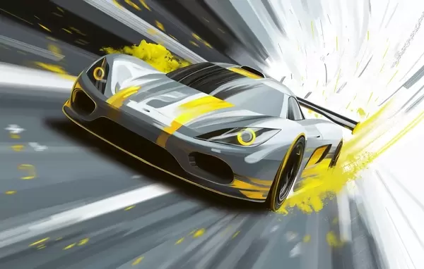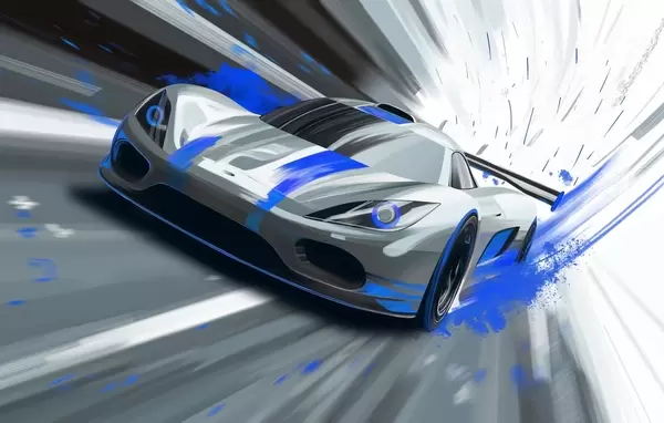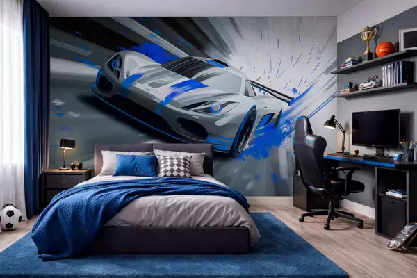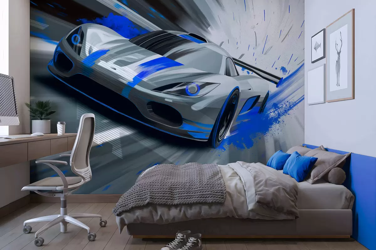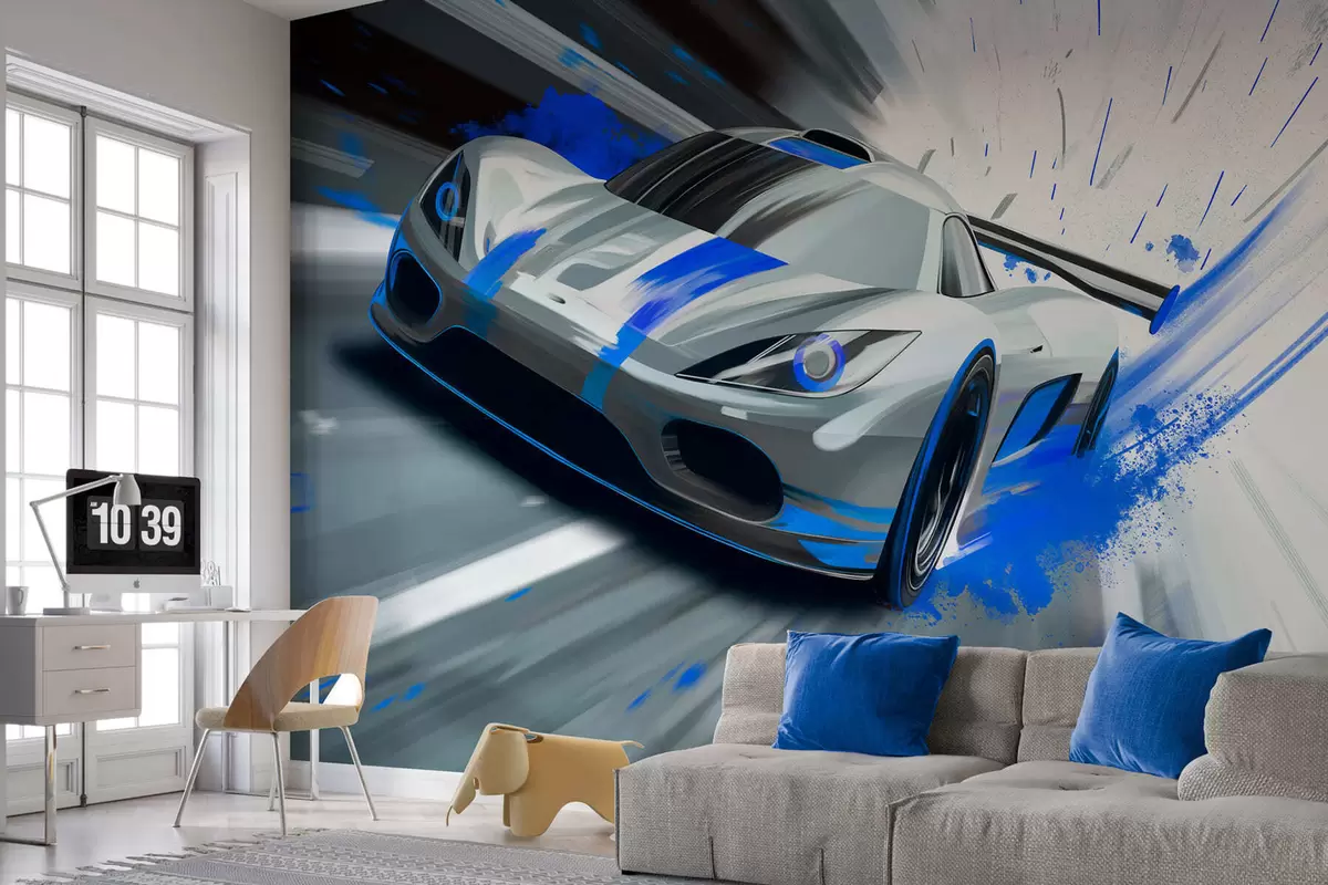 Wall Mural Photo Wallpaper dynamic sports car in digital drawing style with blue accents Nr. w05069