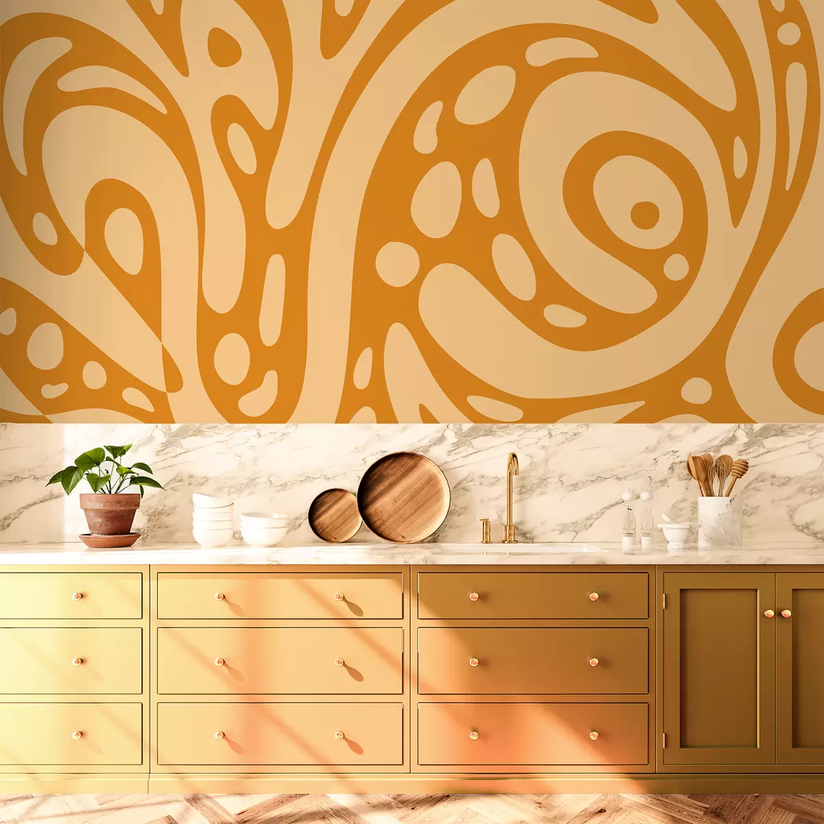 Wall Mural Photo Wallpaper Abstract pattern with warm ochre shapes Nr. w05071v1