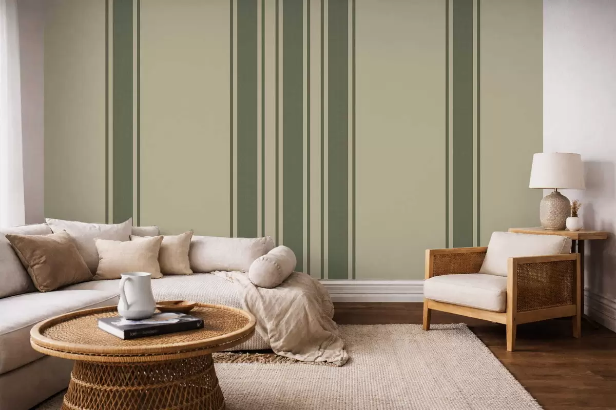 Wall Mural Photo Wallpaper Vertical stripes in muted green and beige palette Nr. w05098