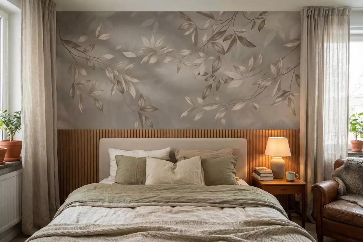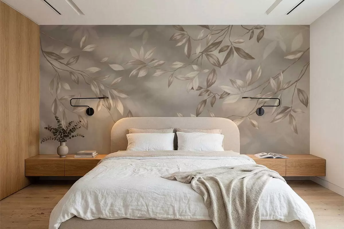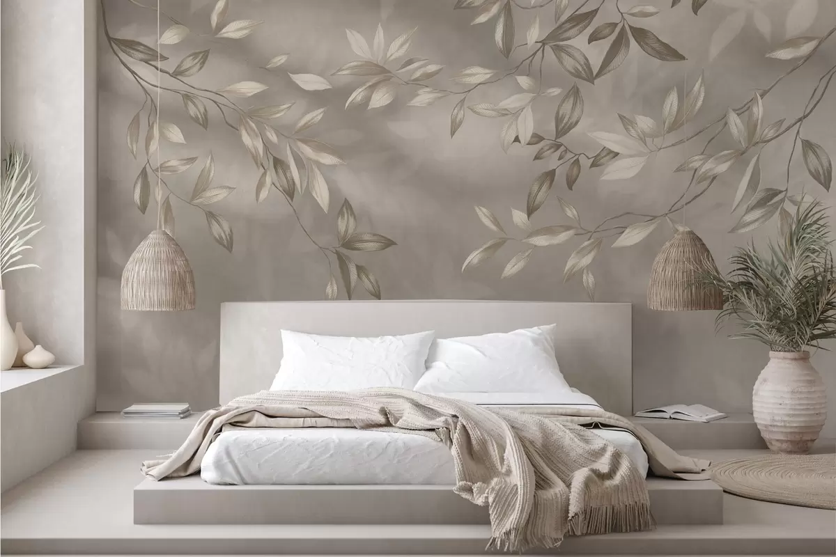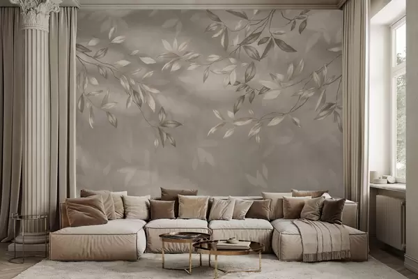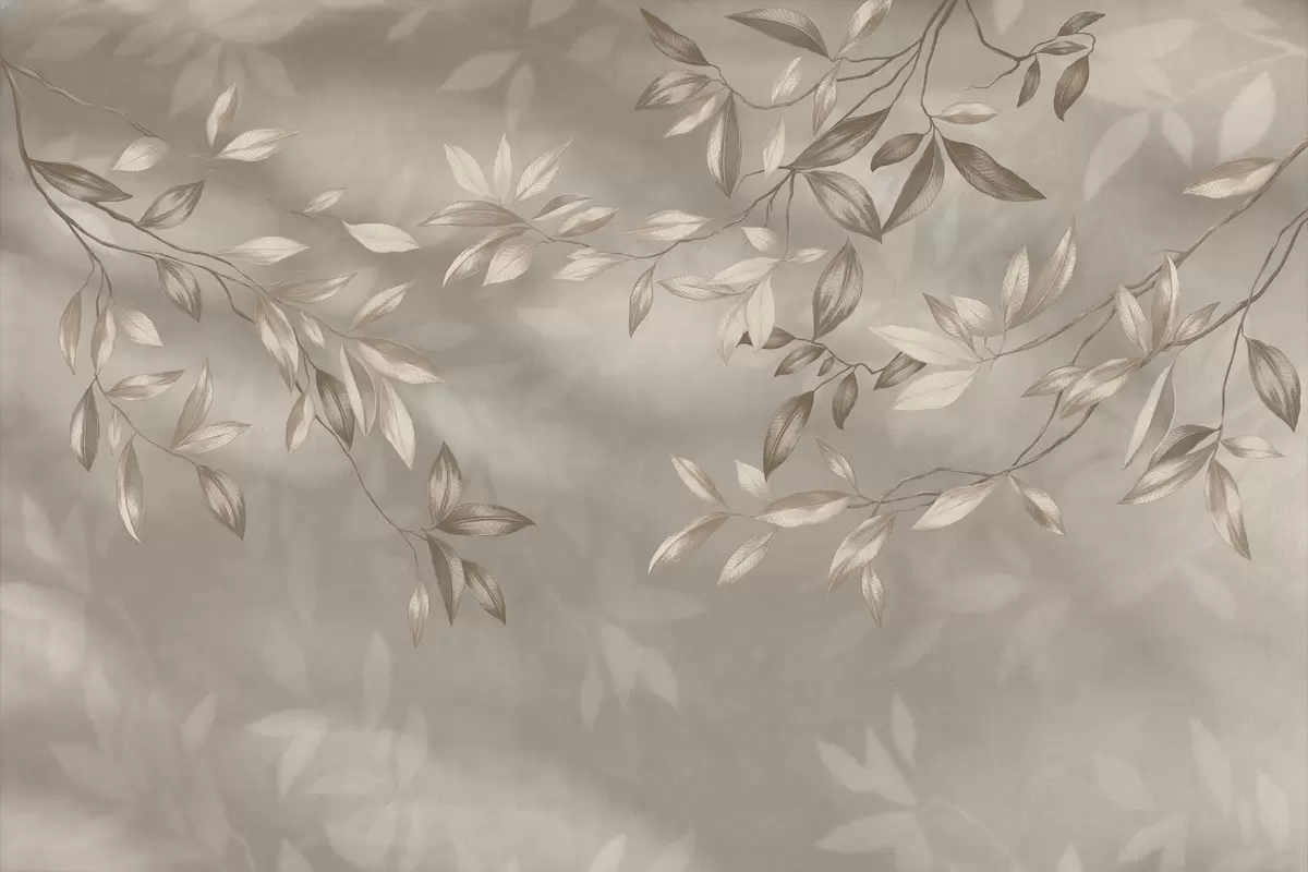 Wall Mural Photo Wallpaper Elegant leafy branches in beige shades on a light background Nr. w05113