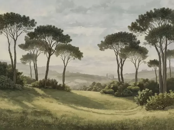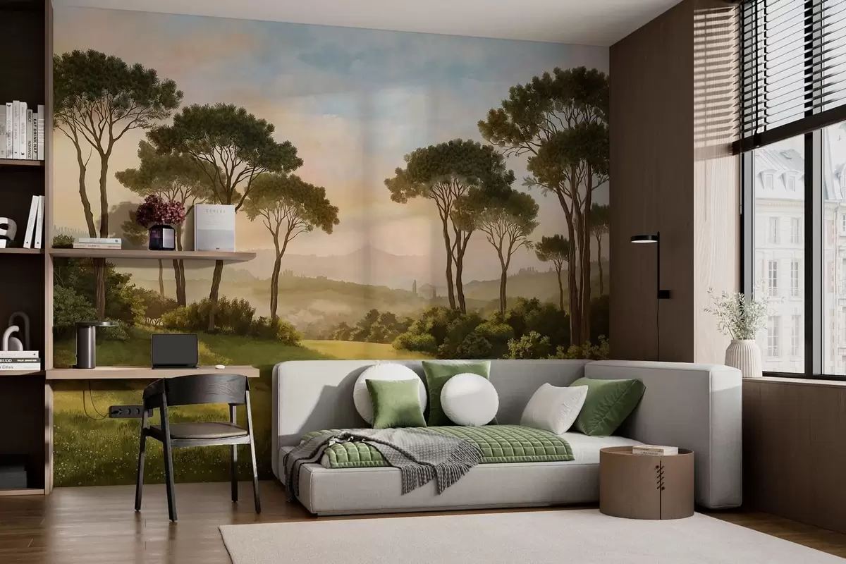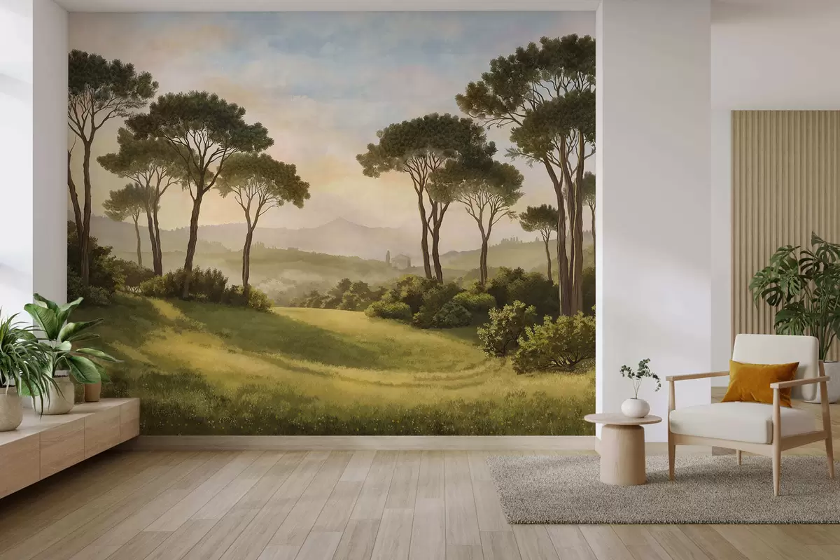 Wall Mural Photo Wallpaper Landscape with trees in warm sunset light Nr. w05122