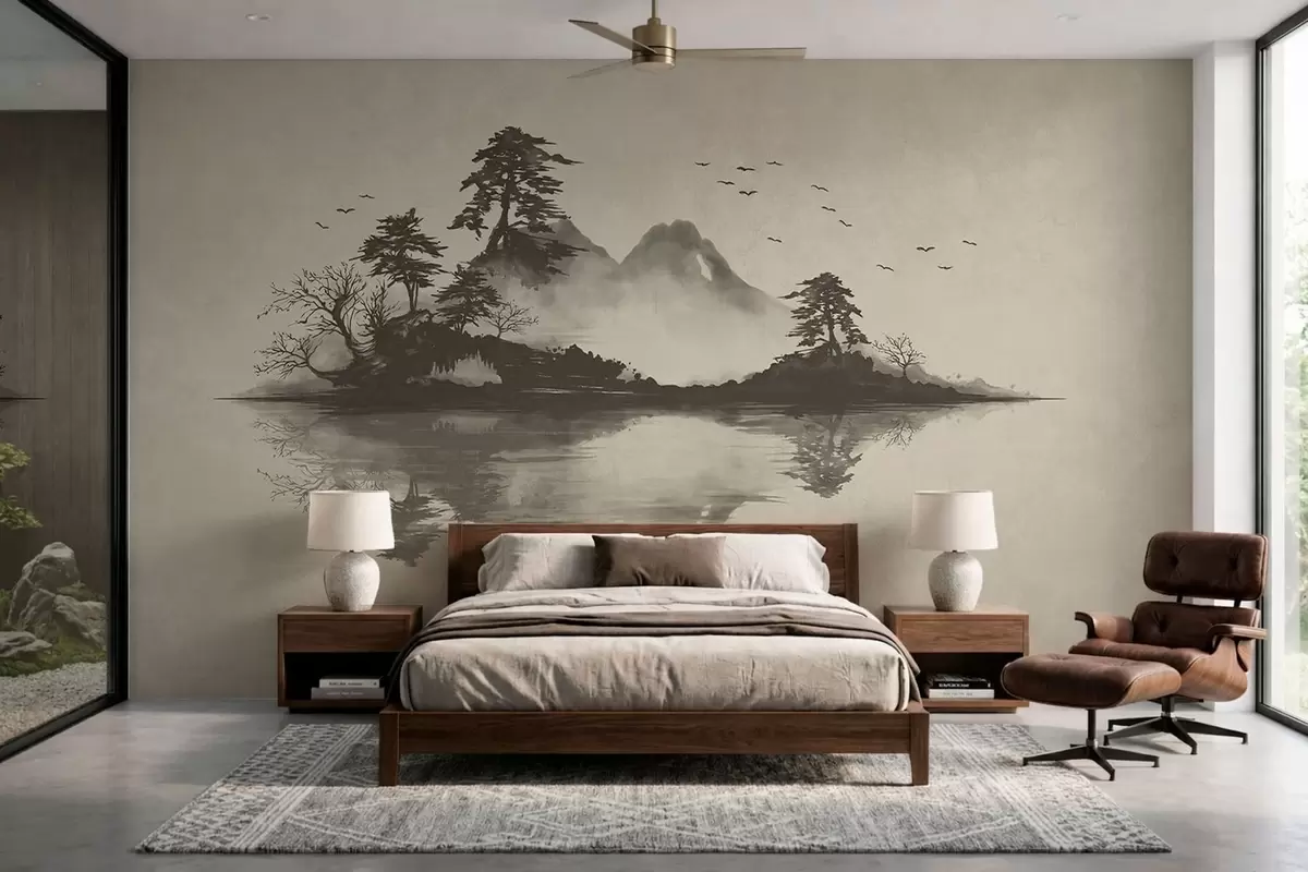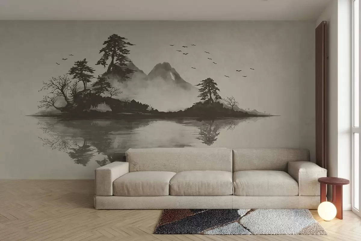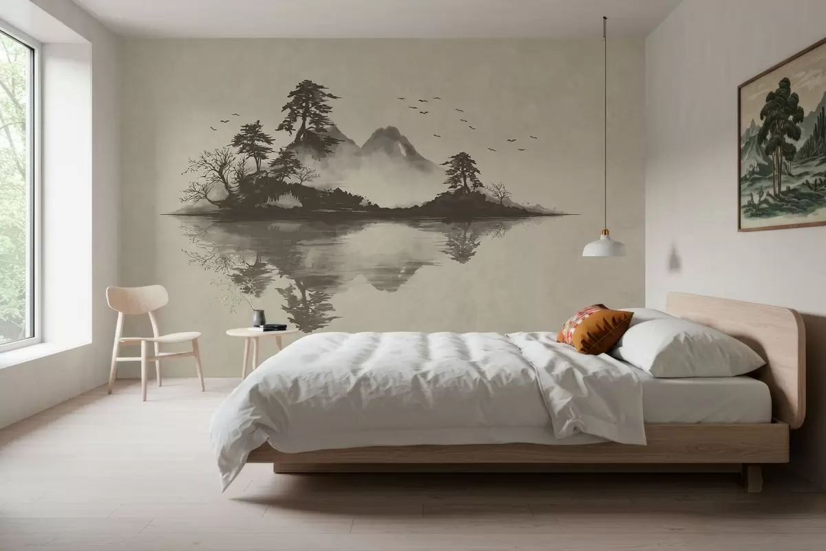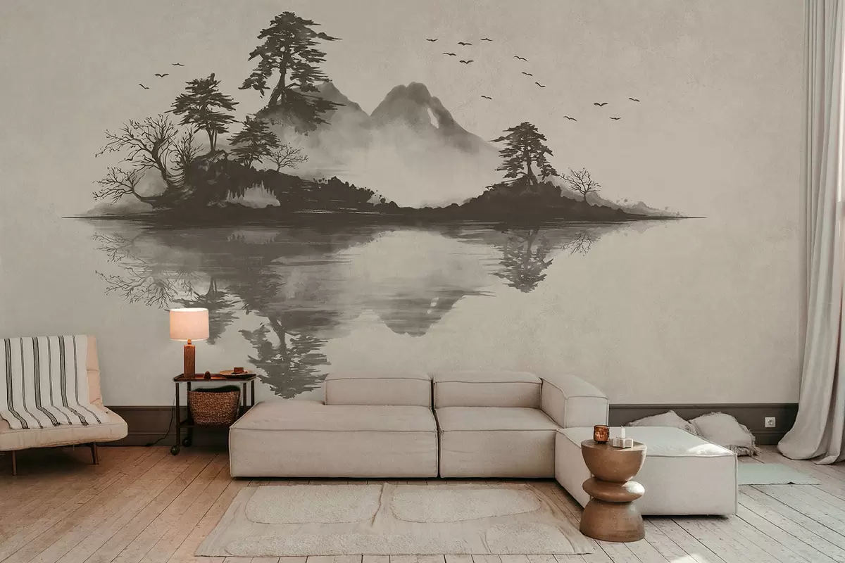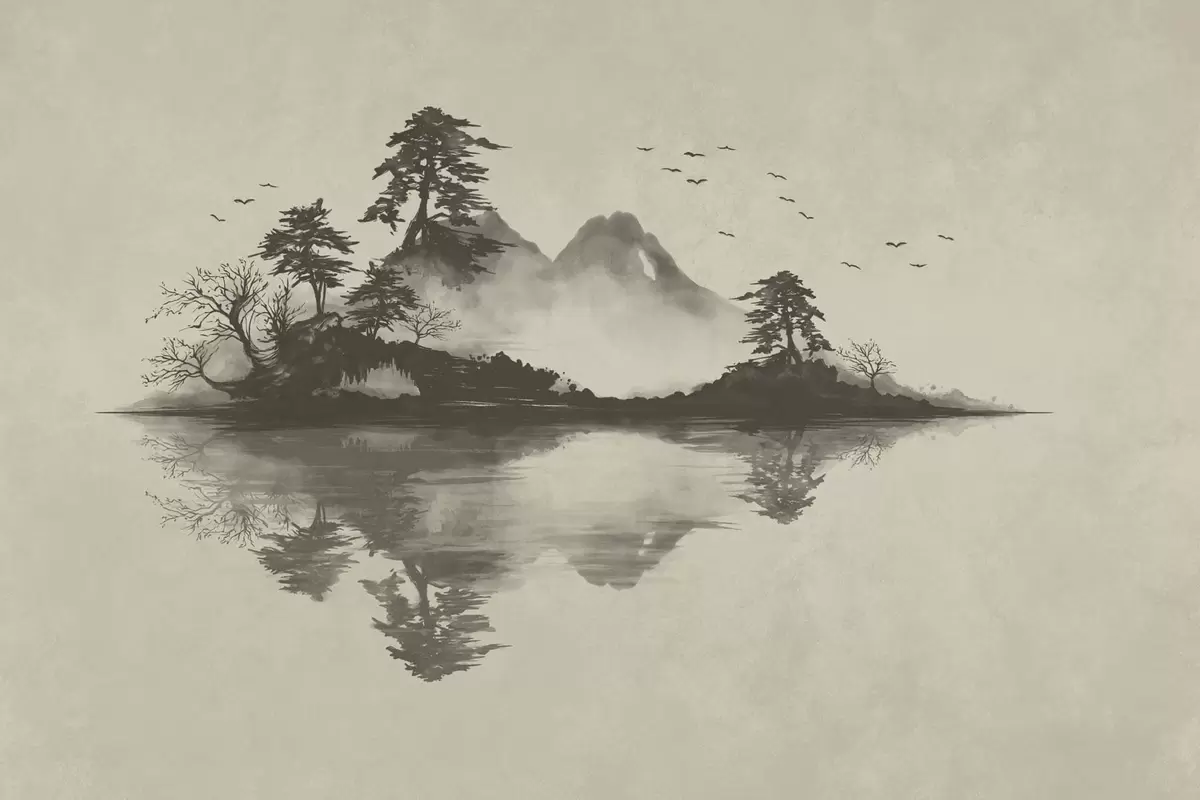 Wall Mural Photo Wallpaper Sumi-e mountain landscape in soft gray tones Nr. w05124v1