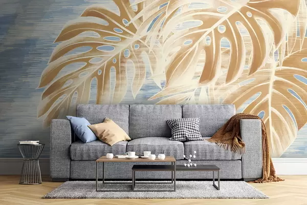 Wall Mural Photo Wallpaper Leaves in light sandy tones on a blue background Nr. w05130v1