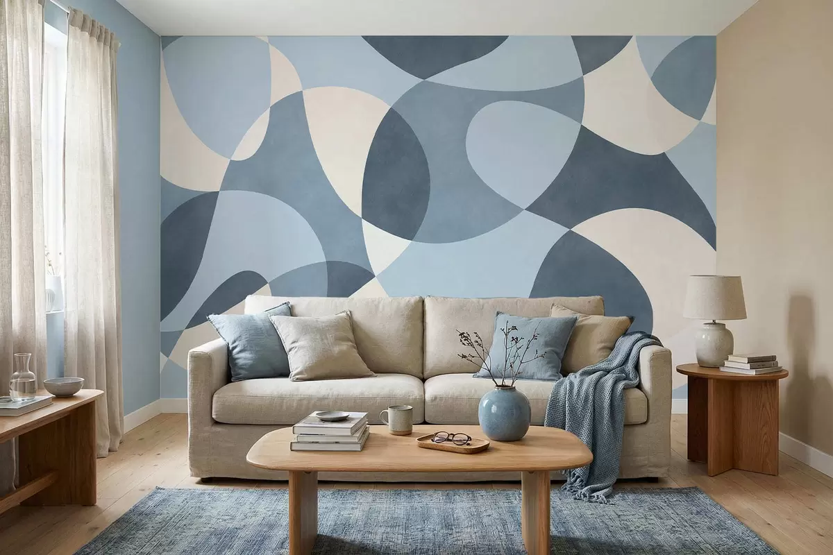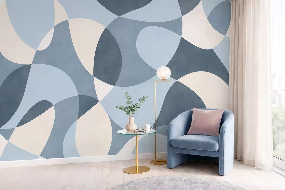 Wall Mural Photo Wallpaper Abstract pattern with rounded shapes in blue tones Nr. w05149v2