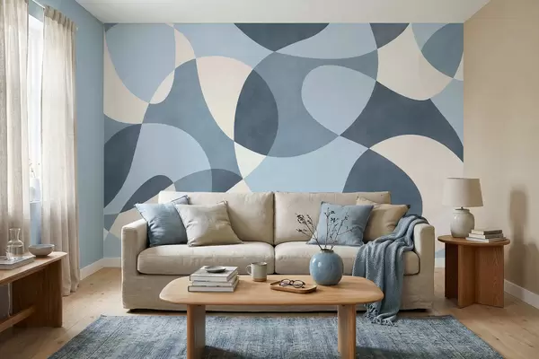 Wall Mural Photo Wallpaper Abstract pattern with rounded shapes in blue tones Nr. w05149v2
