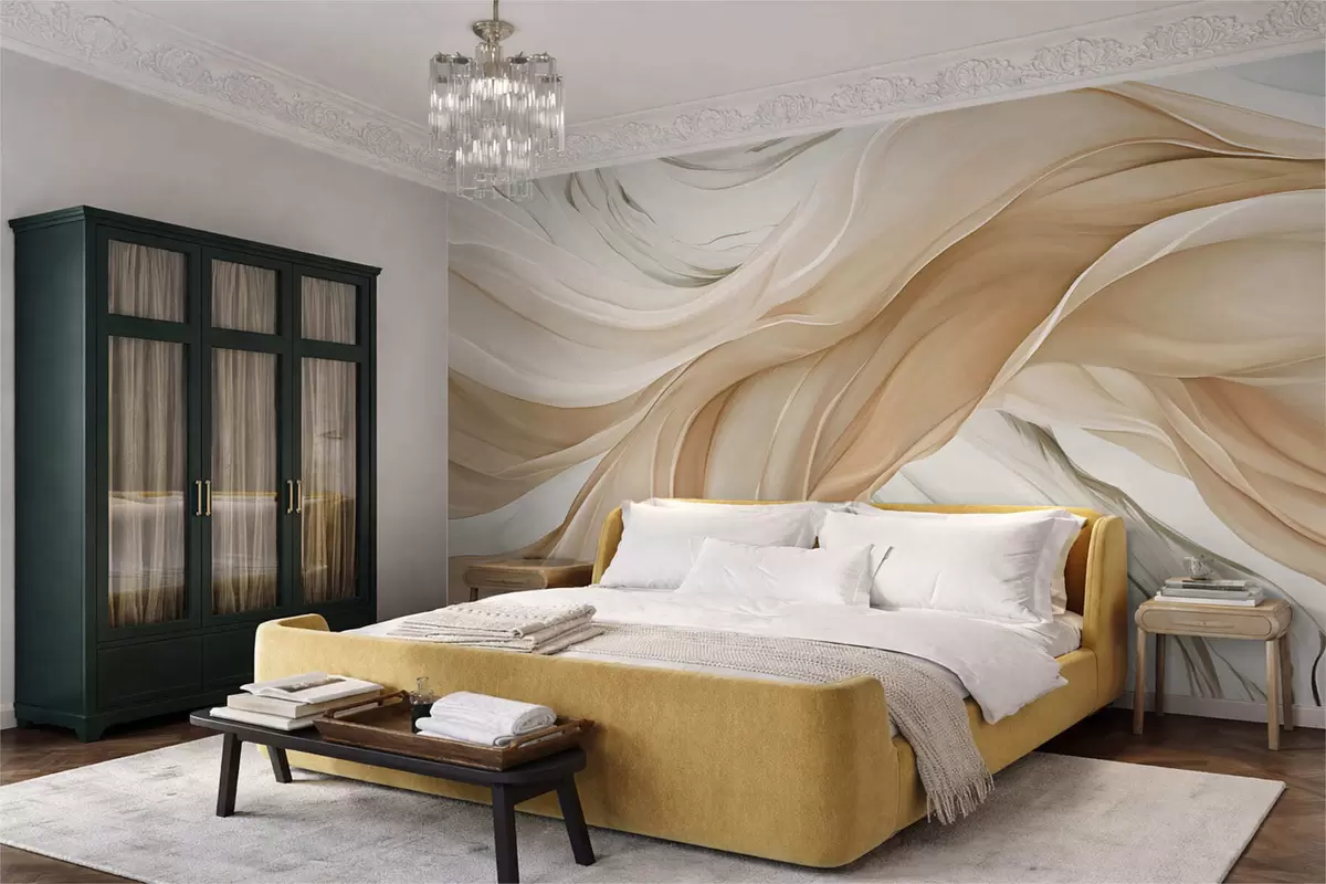 Wall Mural Photo Wallpaper Flowing beige fabric waves Nr. w05152
