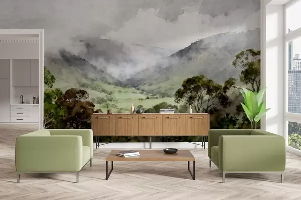 Wall Mural Photo Wallpaper Painted landscape in the fog Nr. w05185