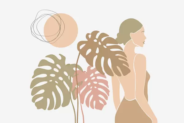 Wall Mural Photo Wallpaper Silhouette of a woman near tropical leaves Nr. w05192