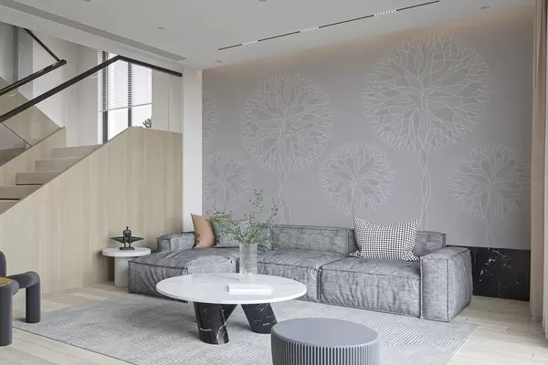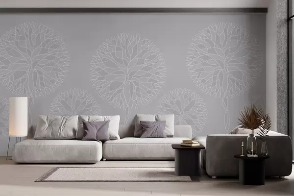 Wall Mural Photo Wallpaper Fantasy linear trees with lush crowns in light grey tones Nr. w05213v4