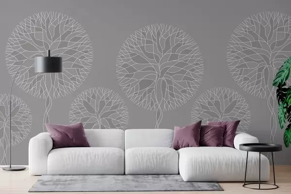 Wall Mural Photo Wallpaper Fantasy linear trees with lush crowns in medium grey tones w05213v5