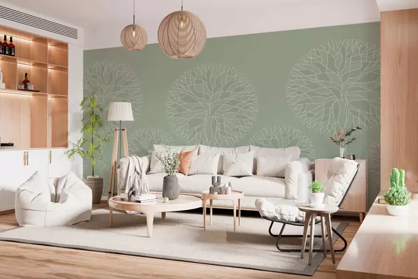Wall Mural Photo Wallpaper Fantasy linear trees with lush crowns in light green tones Nr. w05213v6