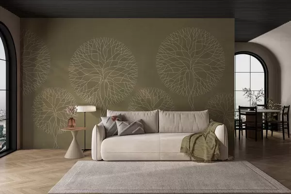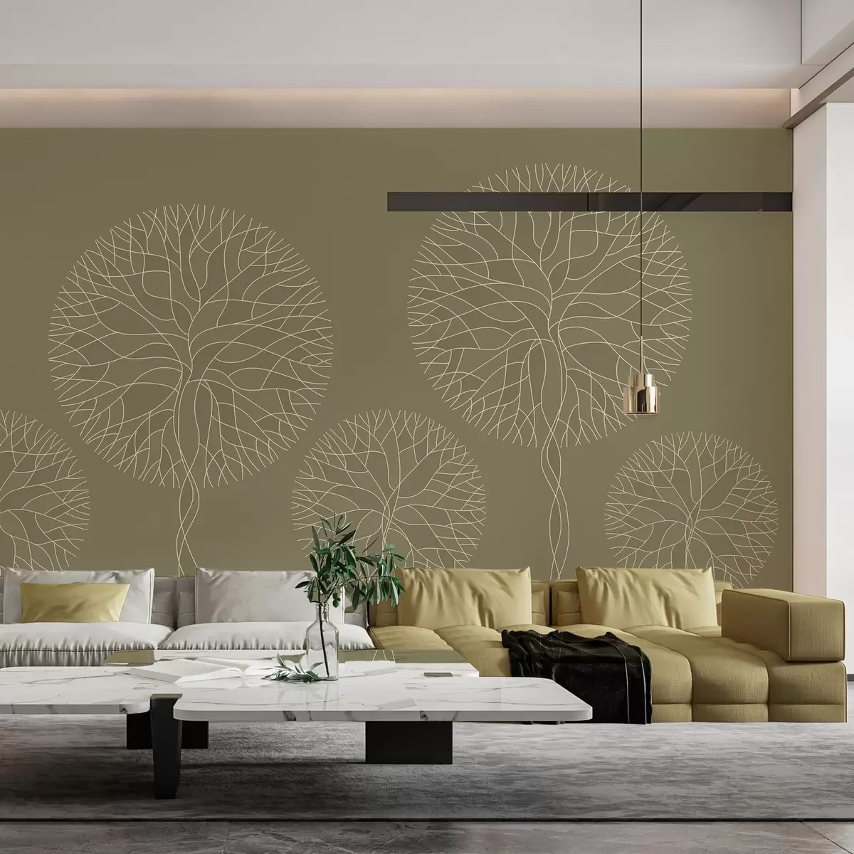 Wall Mural Photo Wallpaper Fantasy linear trees with lush crowns in khaki tones Nr. w05213v7