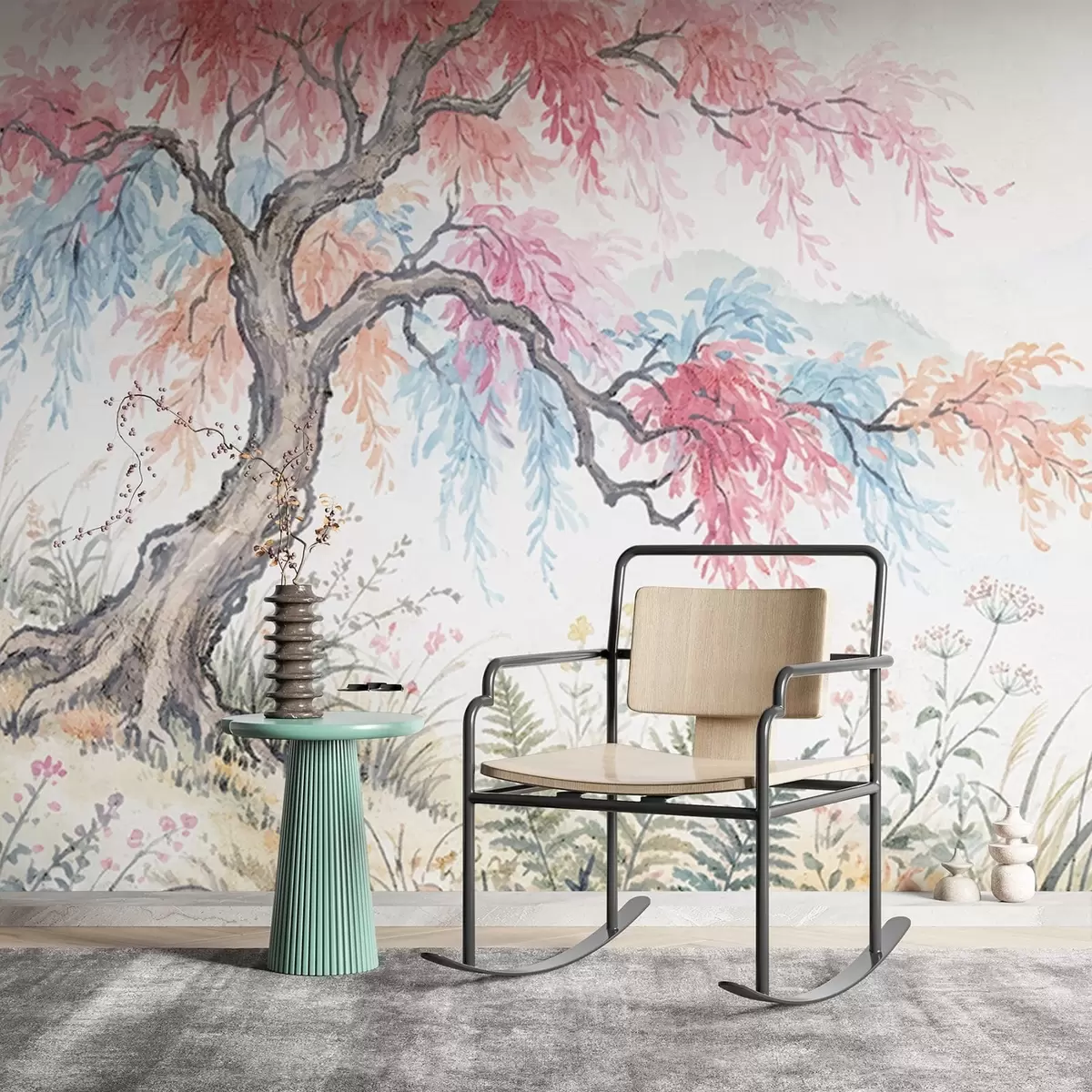Wall Mural Photo Wallpaper Painted colorful garden on concrete wall Nr. w05246