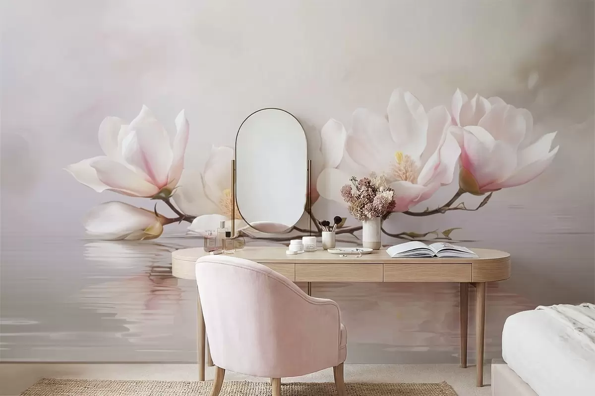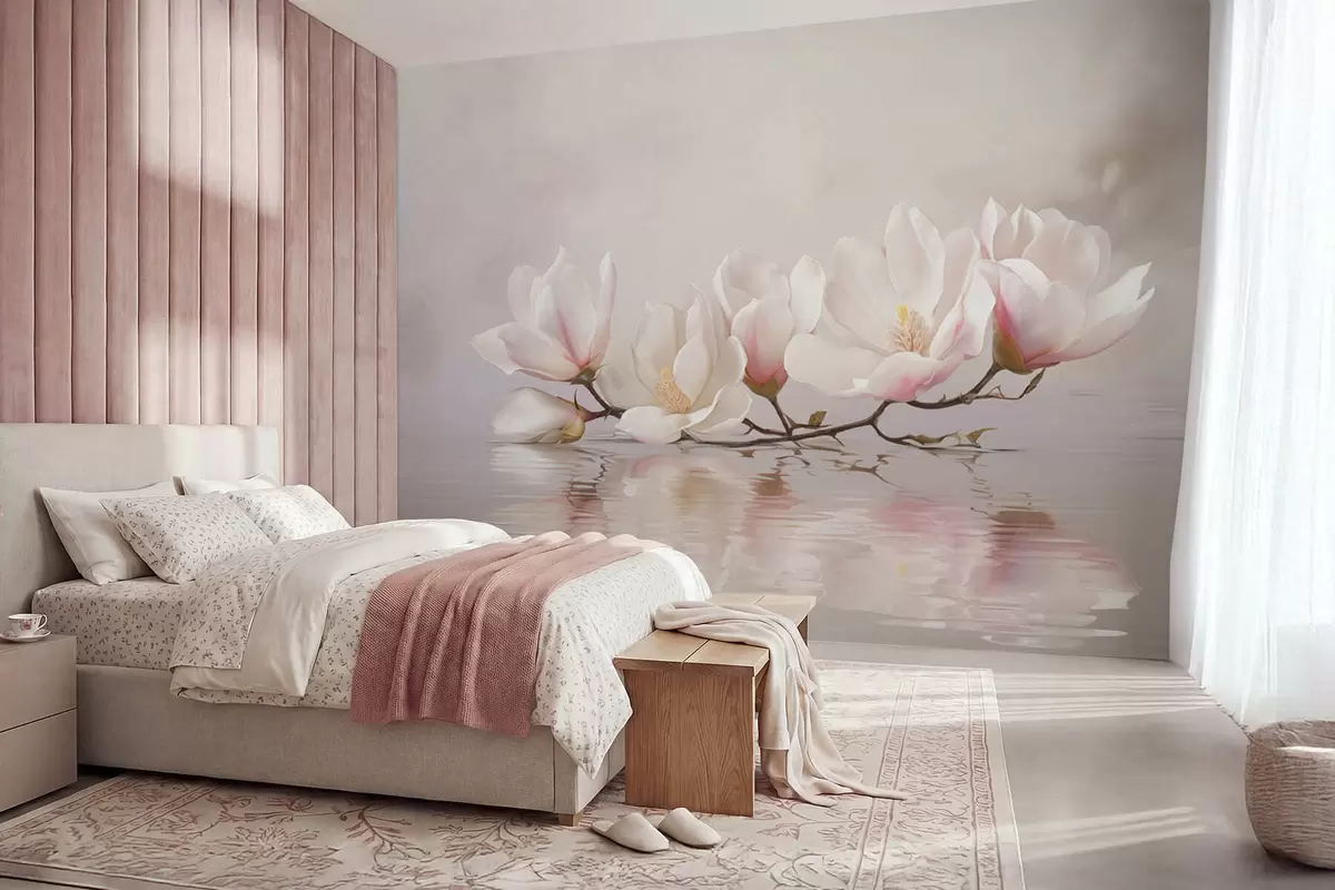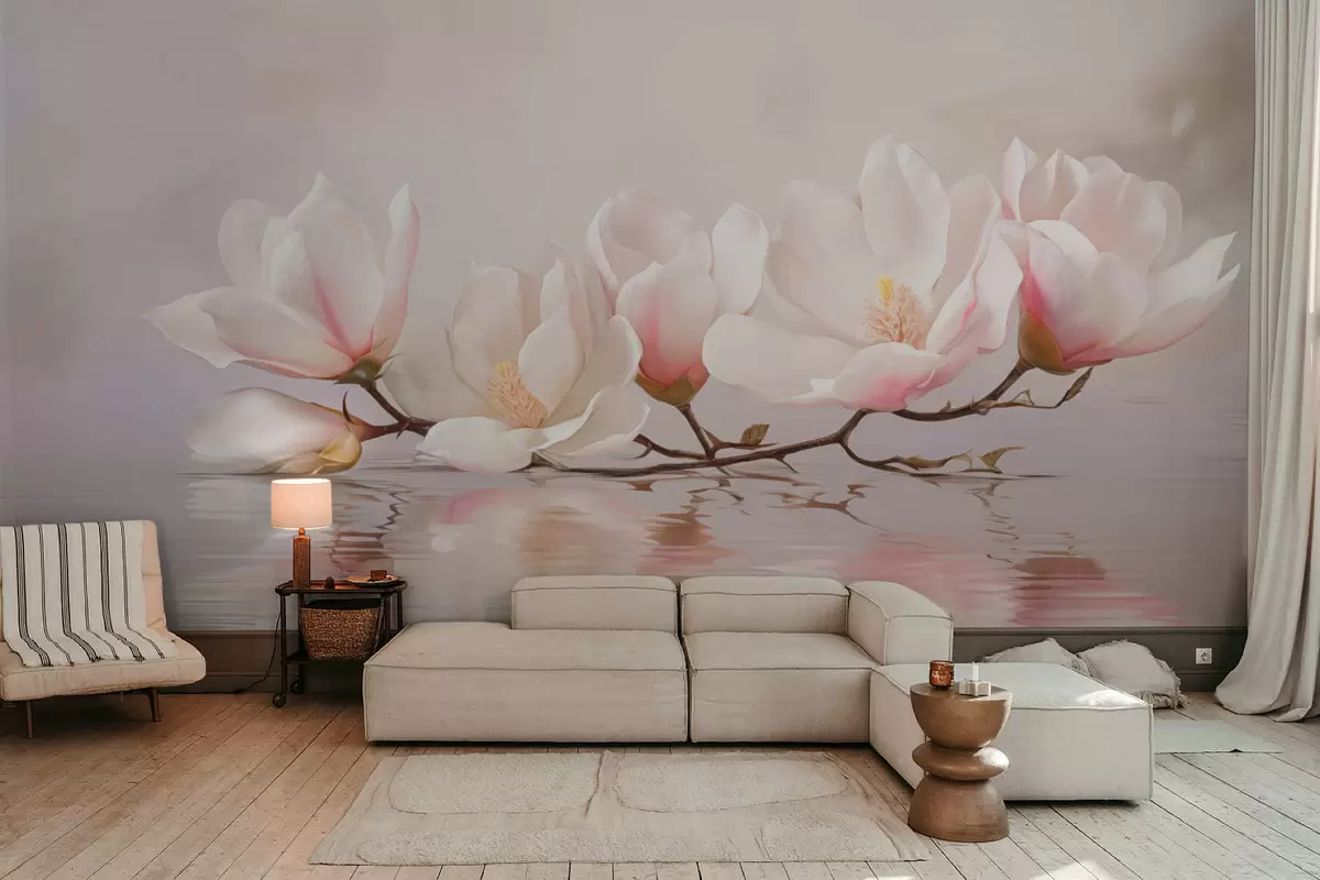 Wall Mural Photo Wallpaper Magnolia branch with blossoms above calm water reflection Nr. w05353v1