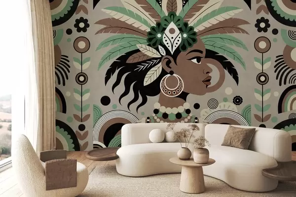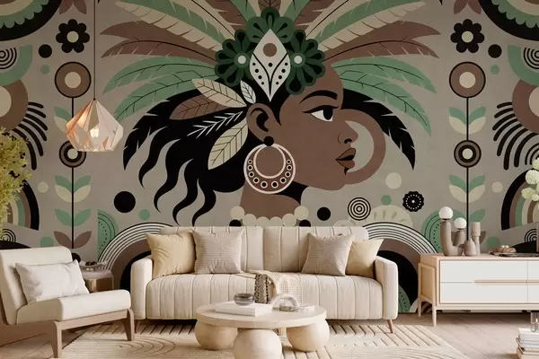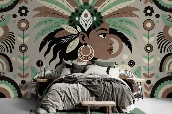 Wall Mural Photo Wallpaper a stylish African-inspired design in shades of green, brown and beige Nr. w05389v1