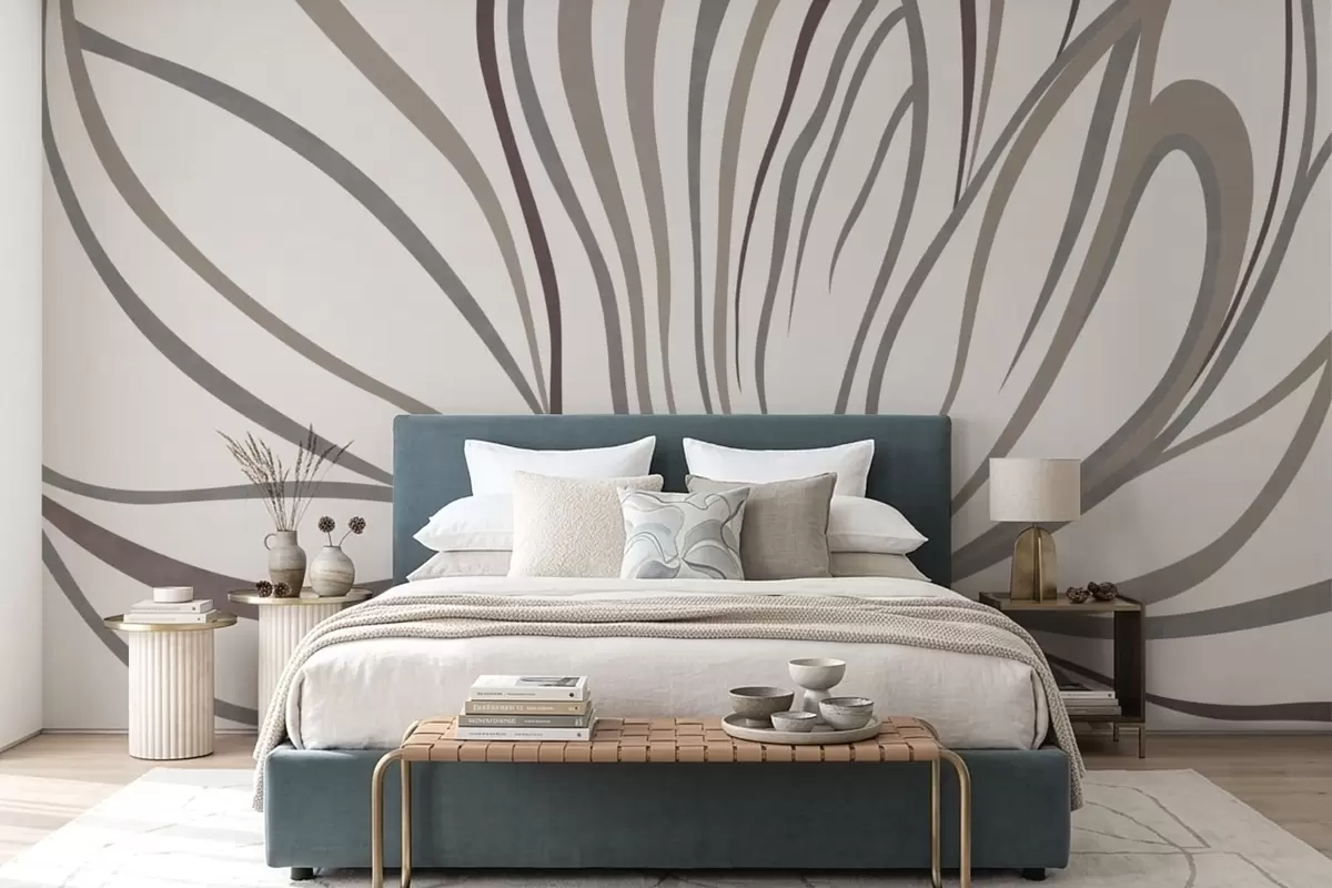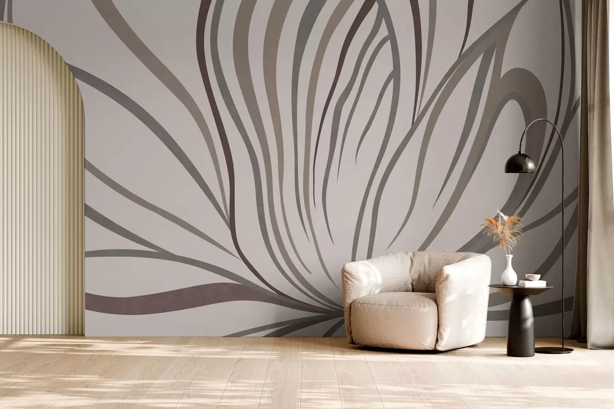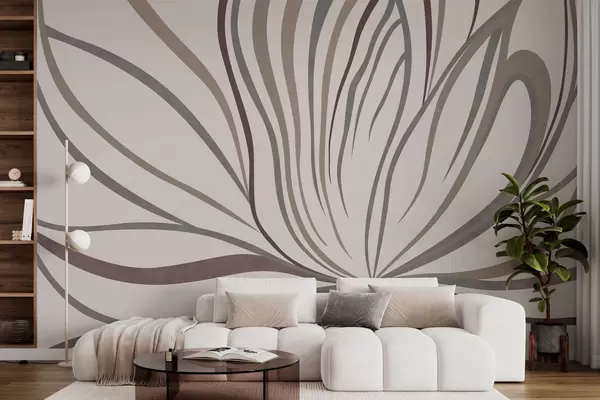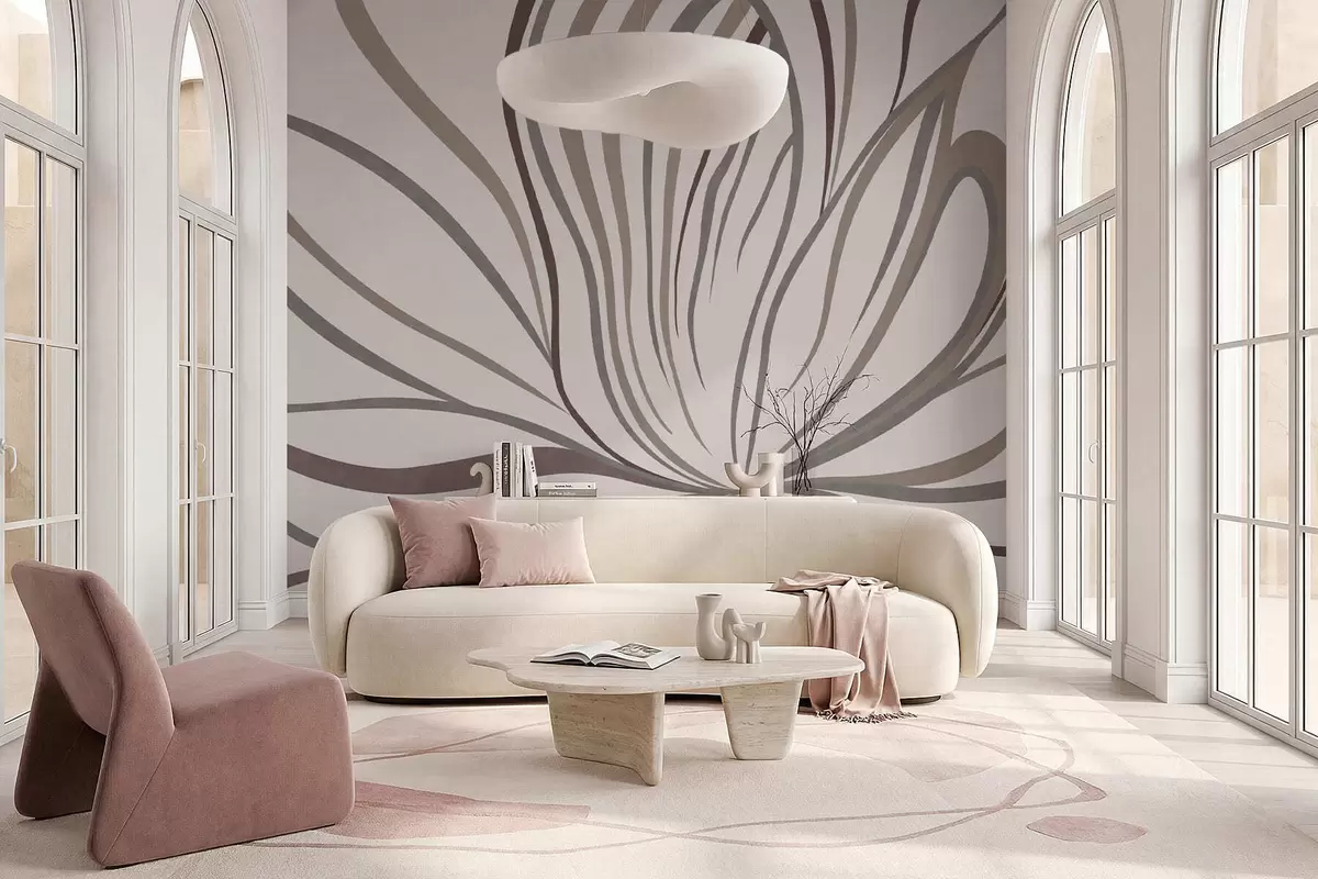 Wall Mural Photo Wallpaper Abstract flower with lines in gray and pink tones Nr. w05392