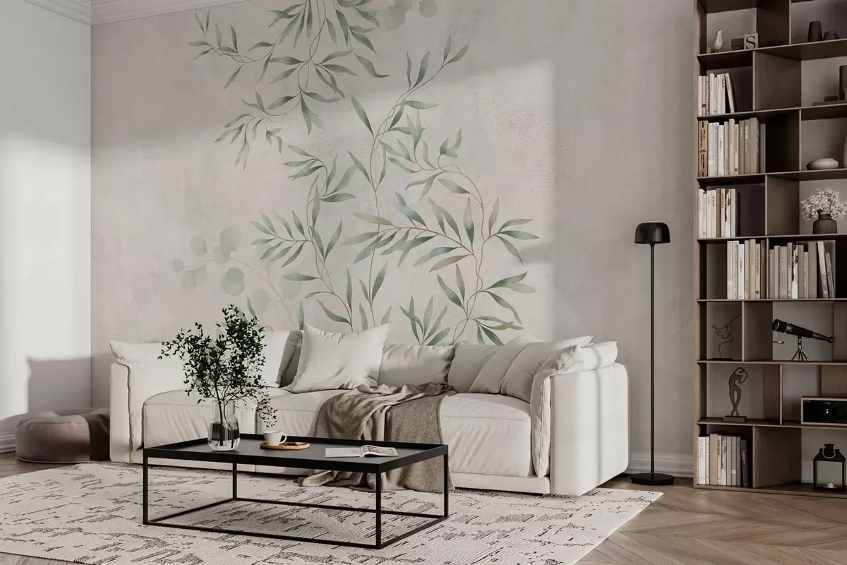 Wall Mural Photo Wallpaper Delicate botanical pattern with thin branches on light background Nr. w05424