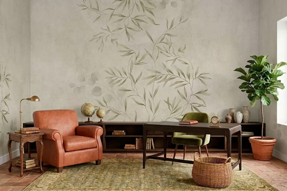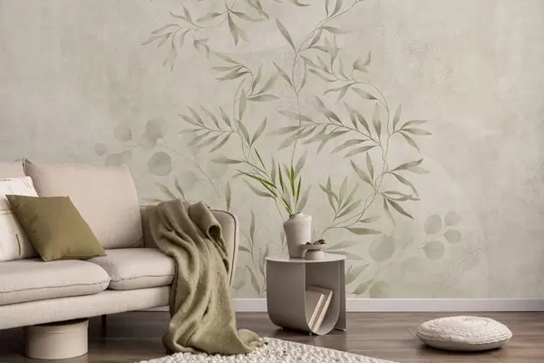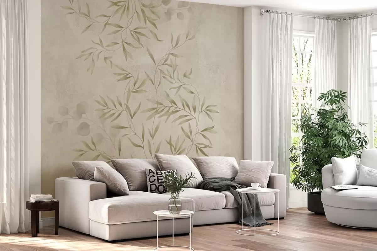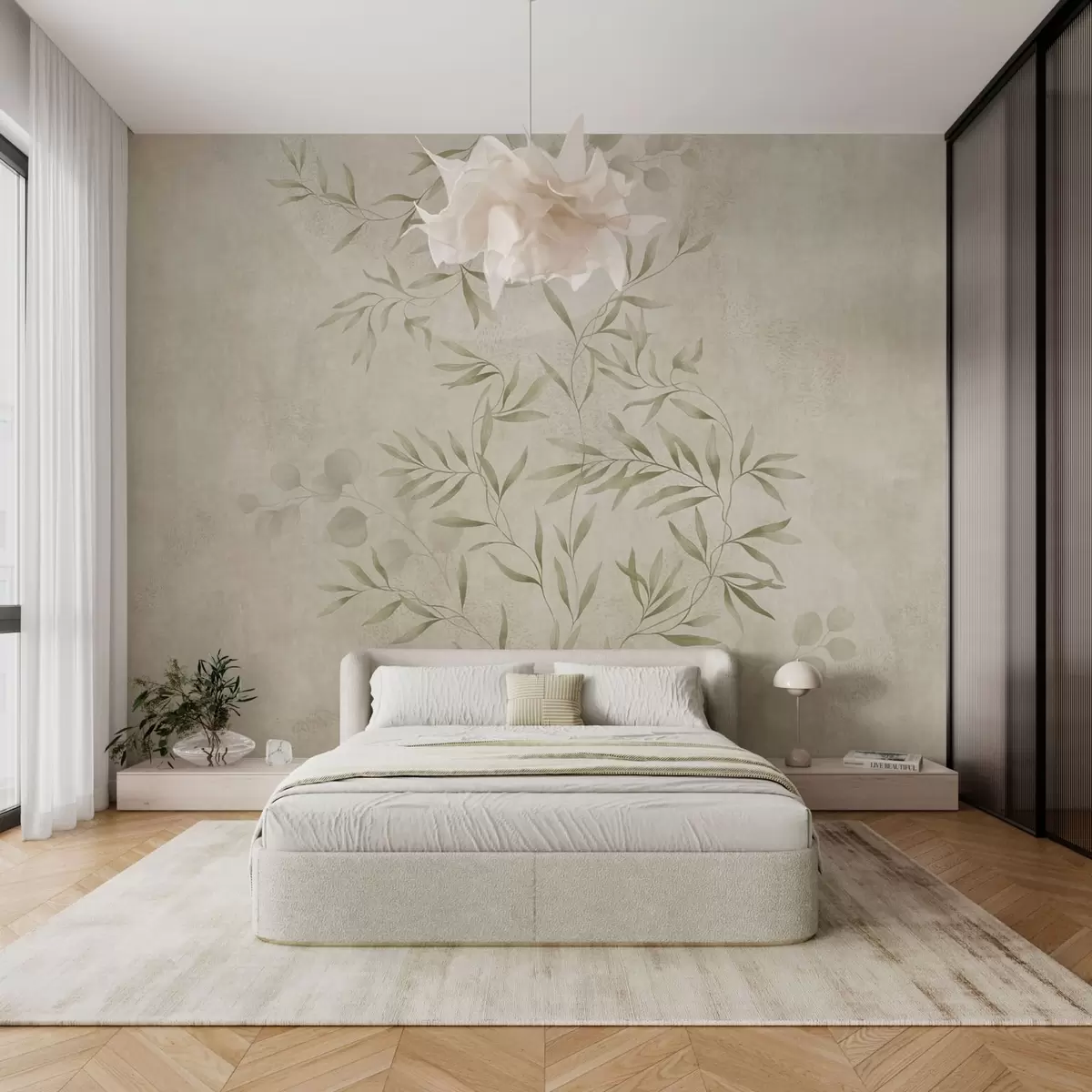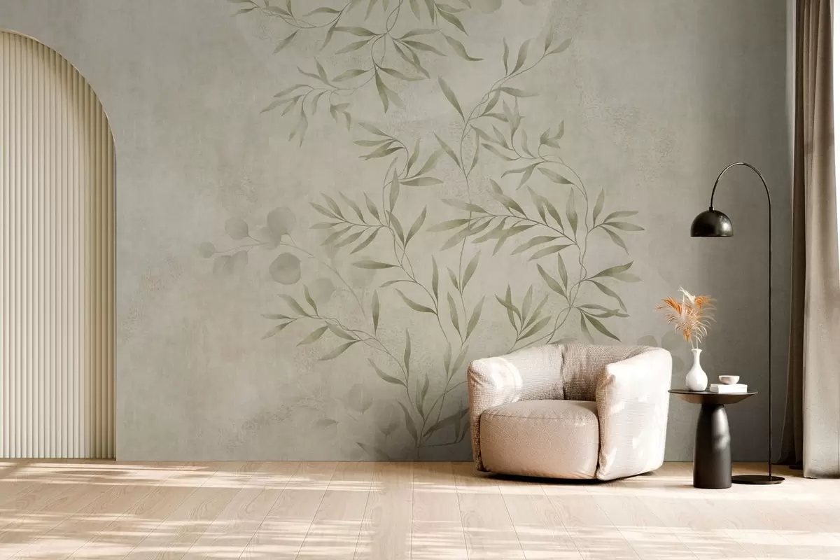 Wall Mural Photo Wallpaper Botanical pattern in light green tones on textured background Nr. w05424v1