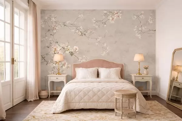 Wall Mural Photo Wallpaper Chinoiserie delicate floral branches on light background Nr. w05427