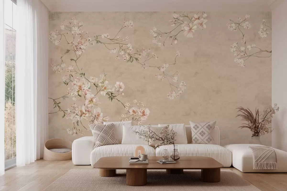 Wall Mural Photo Wallpaper Chinoiserie floral branches on warm beige background Nr. w05427v2