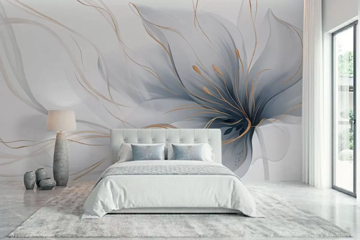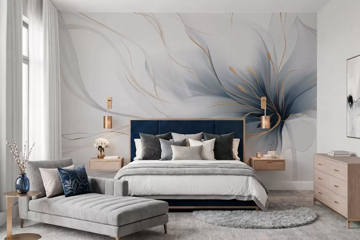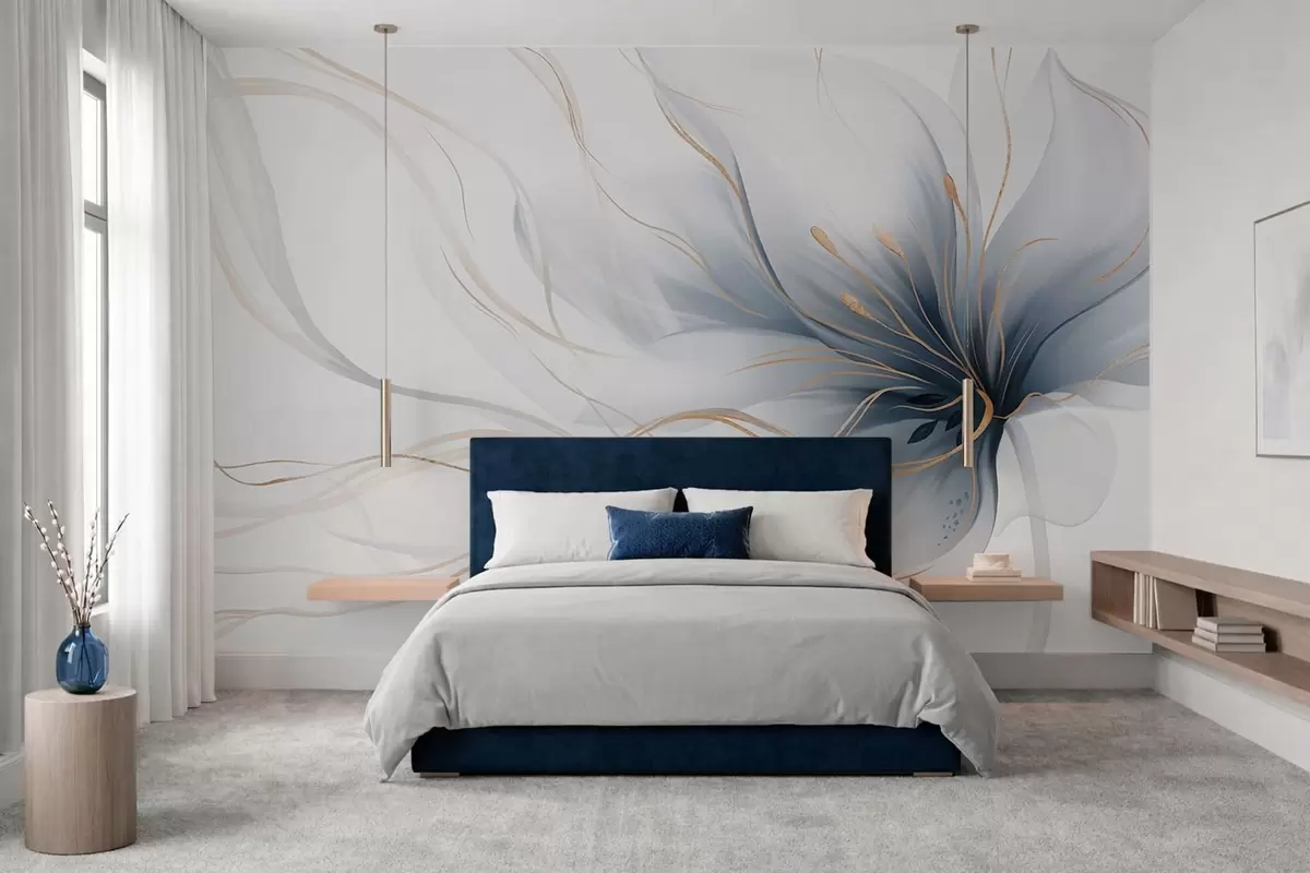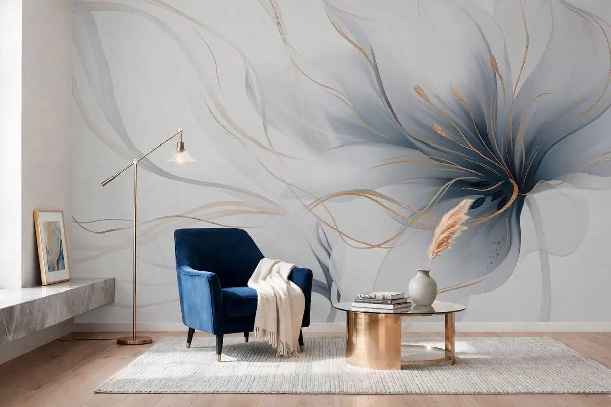 Wall Mural Photo Wallpaper An abstract blue flower with flowing lines in the Fluid Art style w05428