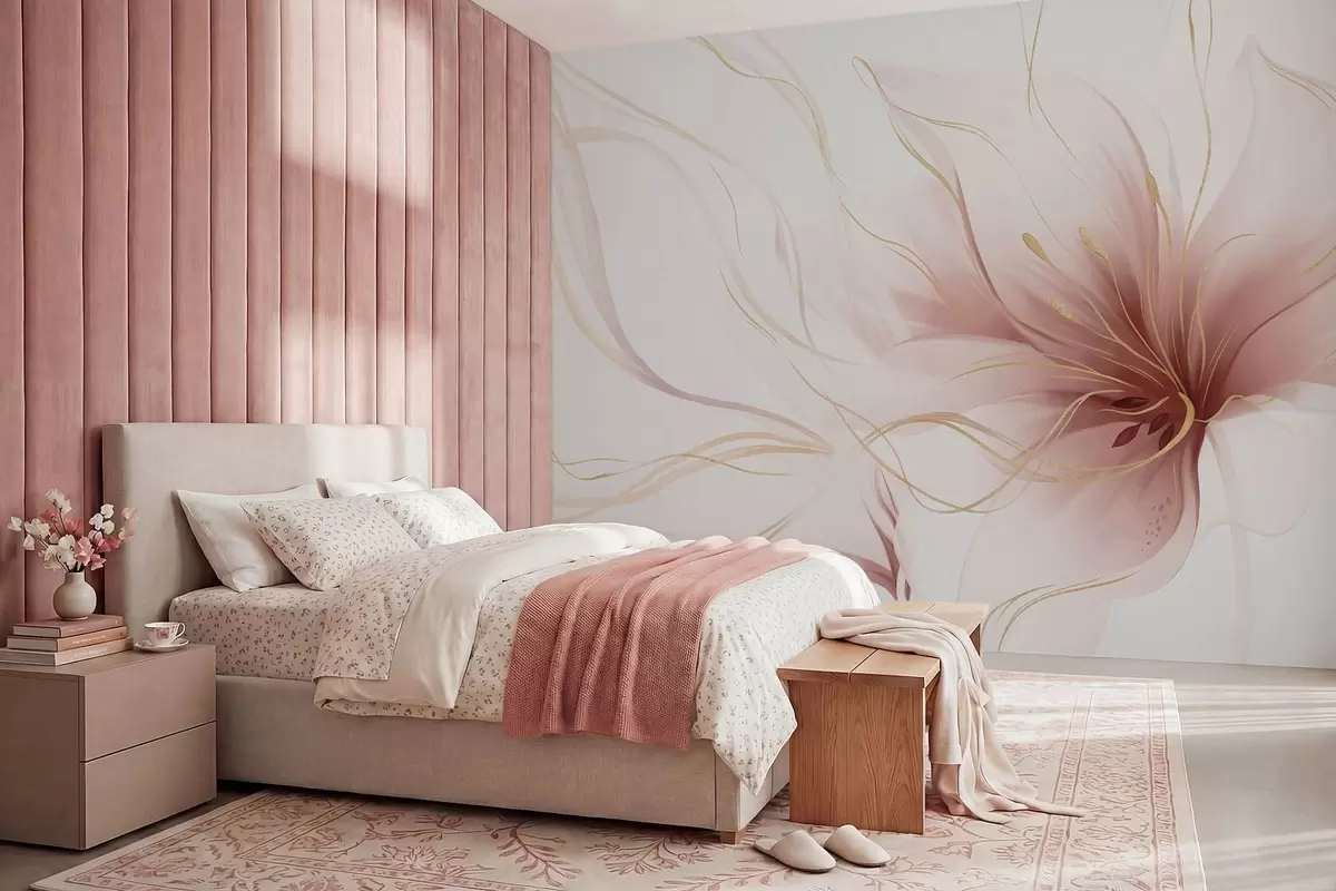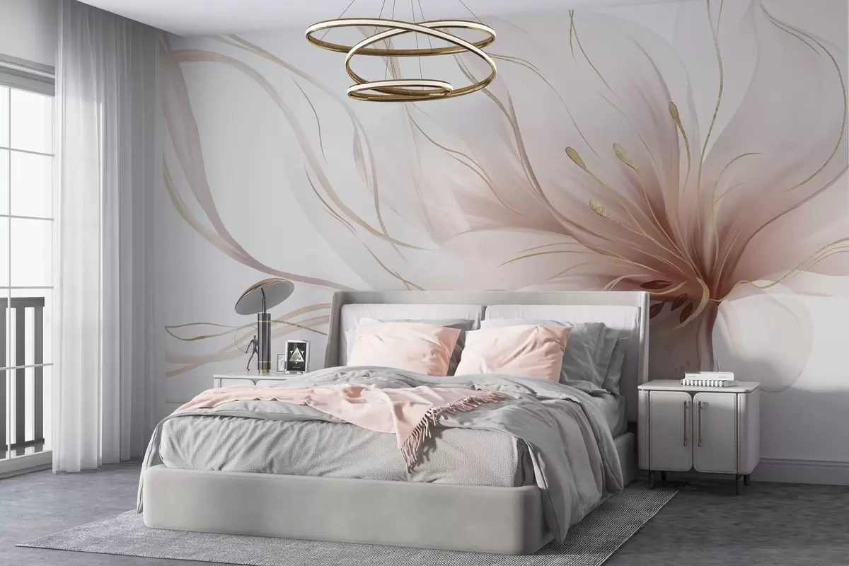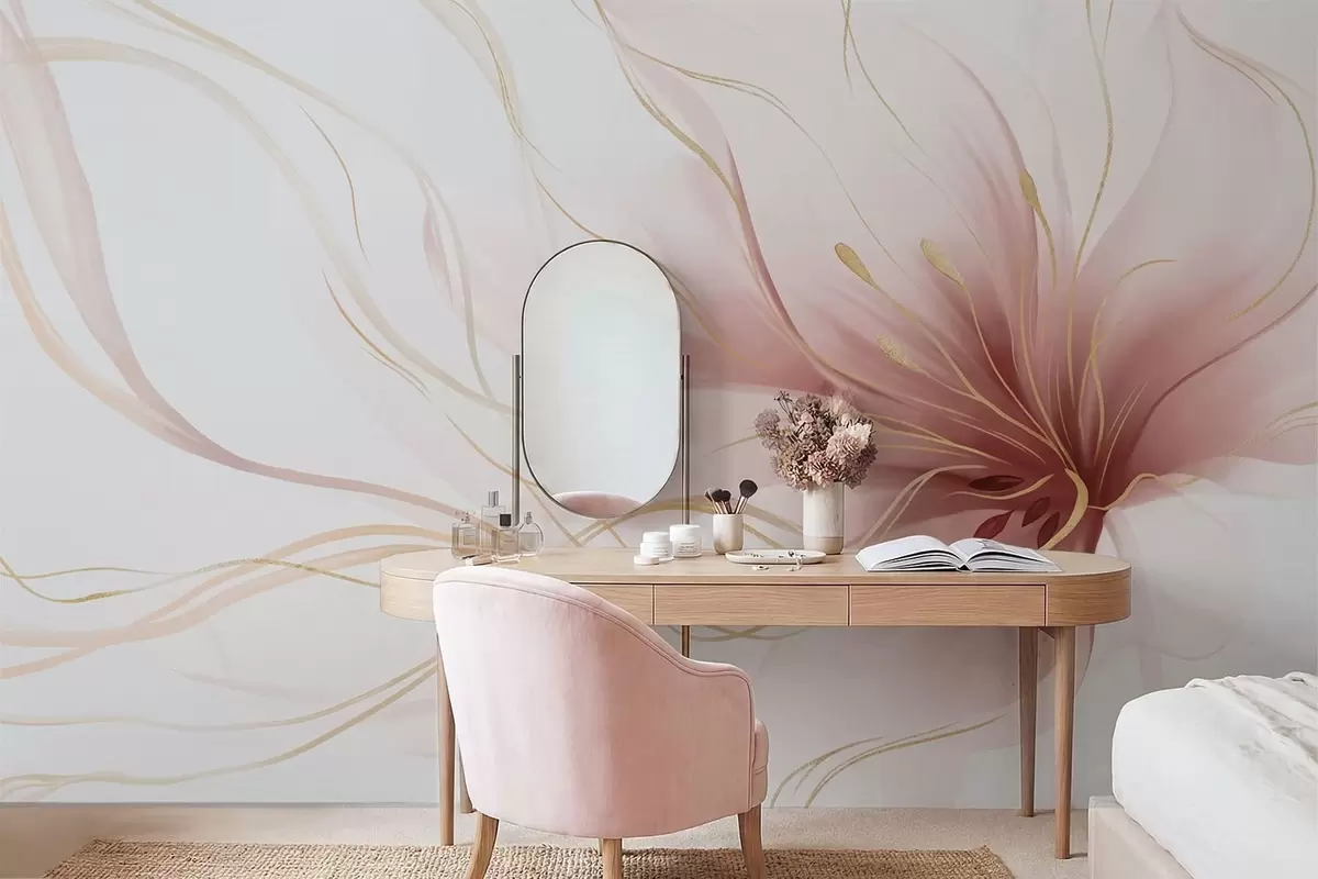 Wall Mural Photo Wallpaper An abstract pink flower with flowing lines in the Fluid Art style Nr. w05428v1