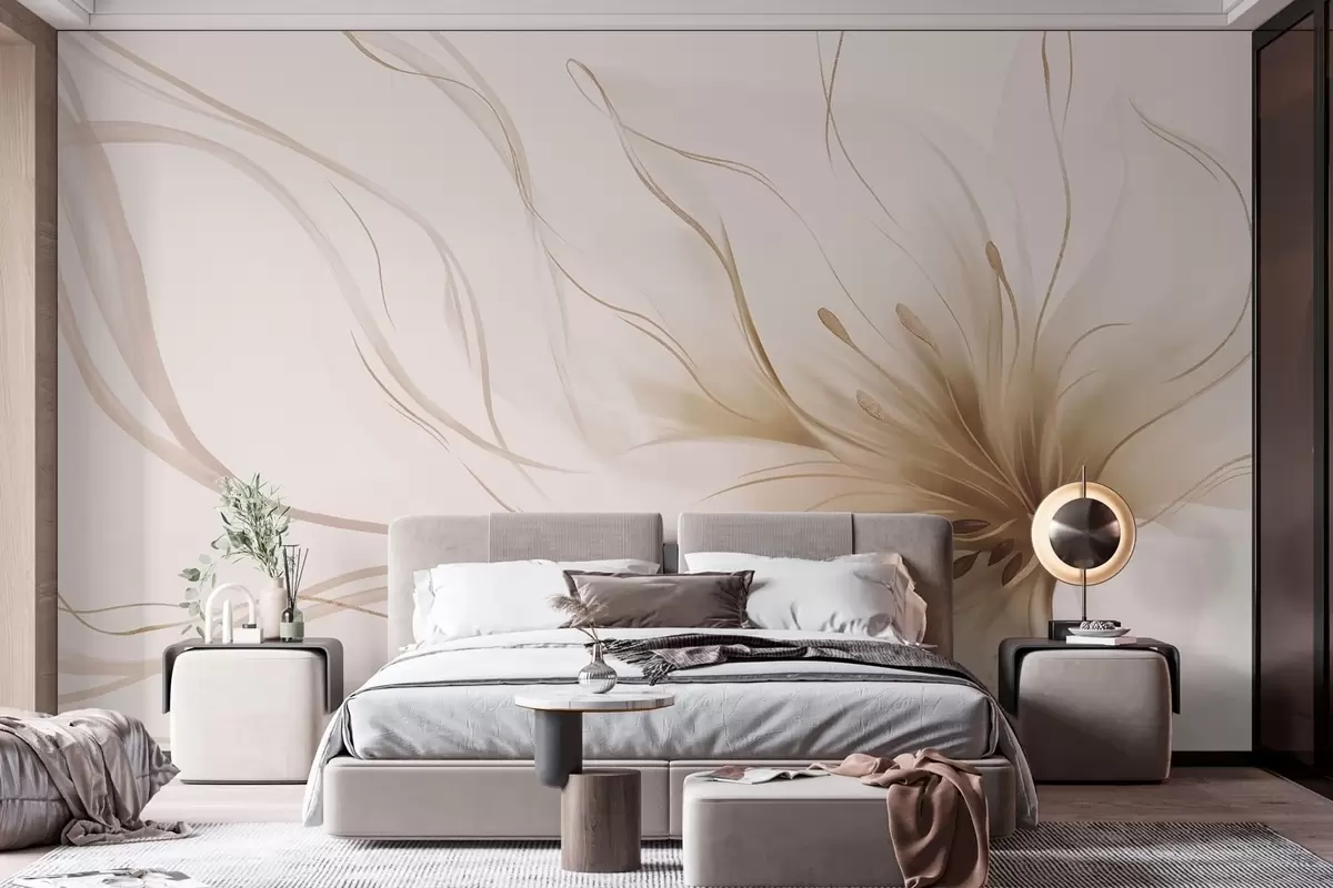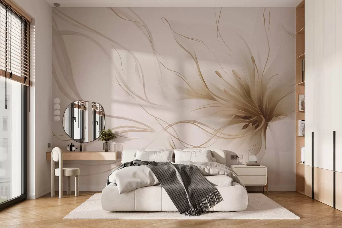 Wall Mural Photo Wallpaper An abstract beige flower with flowing lines in the Fluid Art style Nr. w05428v2