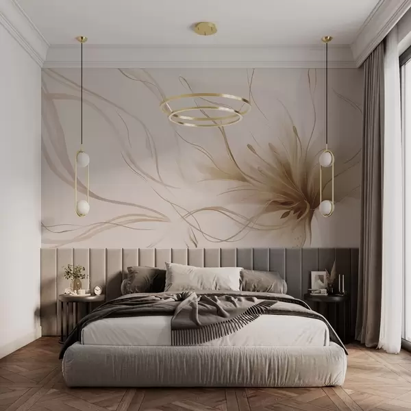 Wall Mural Photo Wallpaper An abstract beige flower with flowing lines in the Fluid Art style Nr. w05428v2