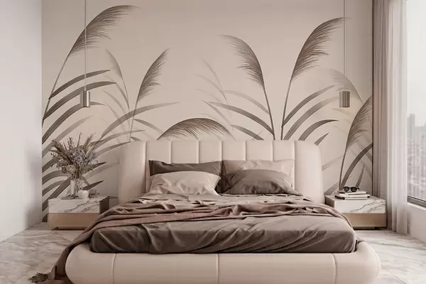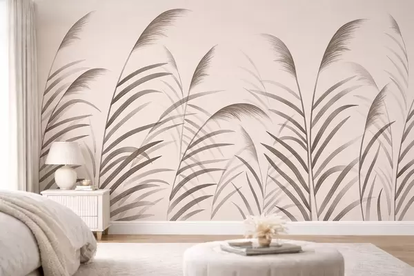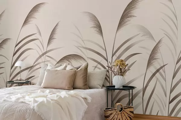 Wall Mural Photo Wallpaper Minimalism reed silhouettes in beige tones Nr. w05432