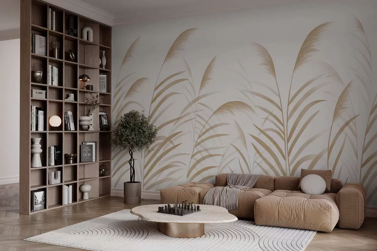 Wall Mural Photo Wallpaper Minimalism grasses in light beige tones Nr. w05432v1