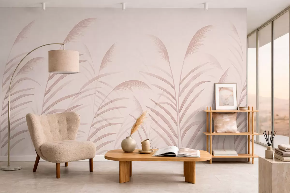 Wall Mural Photo Wallpaper Minimalism grasses in soft pink tones Nr. w05432v2