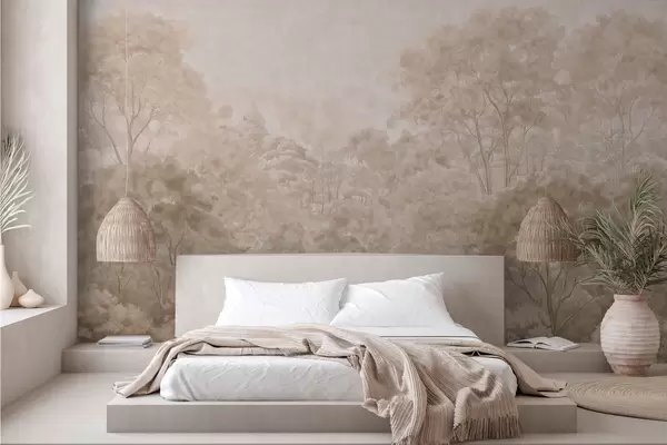 Wall Mural Photo Wallpaper Vintage forest landscape in warm beige tones Nr. w05433v1